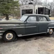 This is a 4 door 1949 Chrysler Windsor. The interior of the car is in excellent condition. Low mileage. Chrome inside car is all clean. Original parts. Exterior has some small rust areas on the bumpers and chrome. We have a replacement bumper we purchased but, never installed on the vehicle, will include the bumper. The trunk is also very clean and has the matching interior to the inside of the car.