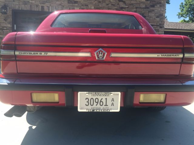 Super clean low mileage 1989 Chrysler TC by Maserati with new Italian leather seat and armrest upholstery. $3000 was invested in the new upholstery, in 2014. The car has been driven very little since the new leather was installed. 39,000 actual miles. Original Maserati factory red paint still looks like new. New tires. New brakes. Umbrella and tool kit. Glass is beginning to separate on porthole windows. Air conditioner needs to be charged. The car has minor dings and scratches but is in excellent condition for its age. Drive this beautiful TC anywhere, and enjoy. $500 deposit due immediately at the end of the auction. Balance is due in seven days. Paypal will be accepted for the deposit. Balance must be paid by cash or certified check.