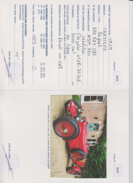 Prewar Chrysler 1929,perfectly restored,full aluminium body,FIA papers,3600 cc prepared in 4000 cc,nice driver,Car is located in Belgium,we can assist for shipping.Please contact me for more pictures of infosTel:01132475455563