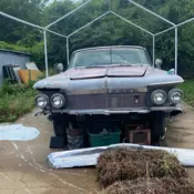 This 61 convertible is 95+ % complete in my opinion and is definitely a major project, but it is extremely rare with only 429 built from what I understand. We have no keys and cannot get into the trunk but it is full of parts. There are definitely multiple sets of headlights and tail lights. There appears to be a lot of chrome and stainless trim, hubcaps and engine parts plus a radiator in the trunk. Mileage is unknown but Ebay make you put something in the description.