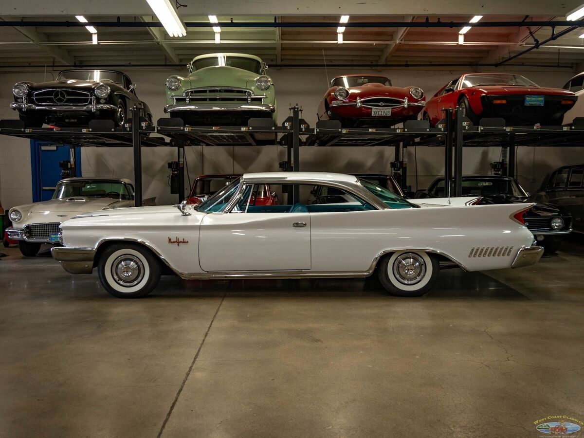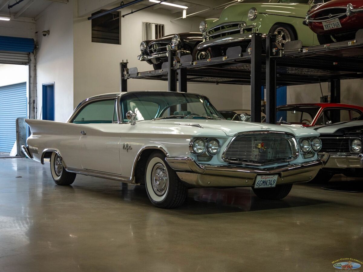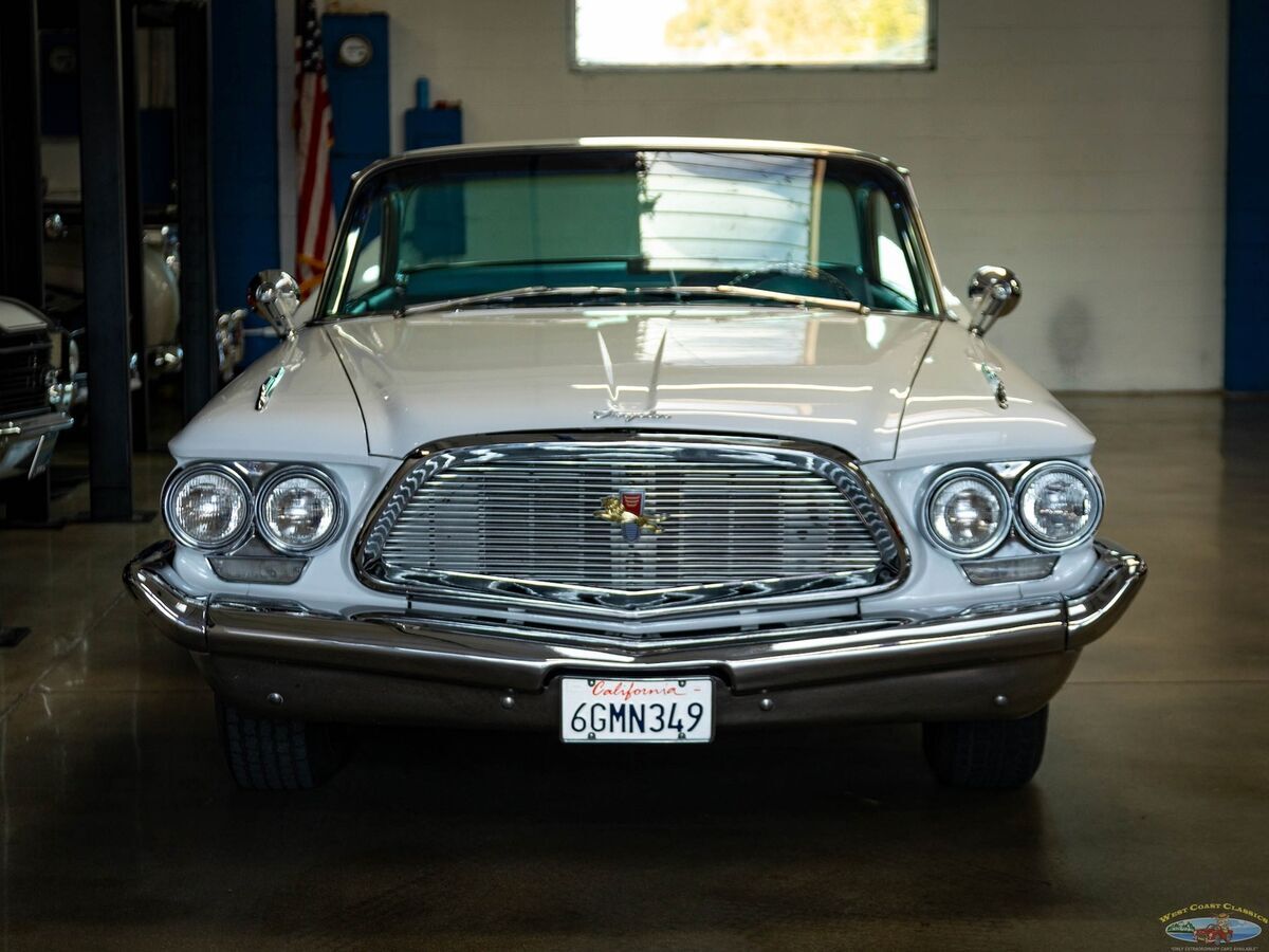 West Coast Classics are proud to present an exceptionally straight and rust free and fully restored example of this very rare 'Mopar Big Fin' 1960 Chrysler New Yorker 413/350HP 4 BBL V8 2 door Hardtop with its original and highly desirable and legendary High Performance 413 CID 350 HP V8 MR 'Golden Lion' 'Wedge-Type' engine with the 4 bbl Carter carburetor which was extremely powerful for its day and which would become the basis for a successful racing engine in Chrysler's future and cemented Chrysler's reputation for engineering great engines that would serve Chrysler well in various forms for the next 20 years.This particular car was recently acquired from its long time California owner and is a superbly straight, rare and virtually completely stock fully restored example of a reportedly always garaged car with no signs of any accident damage and with a completely straight and honest body with absolutely no rust or filler and with all its original 'TS' headlamps and its all original factory tail lamp lenses and its original factory build sheet.One of only 2,835 '60 2 Door Hardtops built and marketed by Chrysler as a 6 passenger vehicle and quite simply as 'America's most powerful car' and a model that in 1959 was the prestigious 'Motor Trend' magazine model selected not only as the seasons 'Best Looking Hardtop', quite an achievement in Detroit's fabled 1959 year, but also reported that the same year 1959 'E' series letter model moves even faster than the 1958 'D' series which started arguments that continue to this day!This was the first year Chrysler would carry the unit-body construction for the 1960 model from the previous '59 year body-on-frame construction. This was also only the second year for the 'Wedge-Type' V8 engine. An absolutely stunning car with its original wrap around front and rear picture window windshields and finished in this striking original color combination with the incredibly rare original specs vinyl seats in 'Blue' cloth & vinyl color and embossed with Chrysler emblems with a padded dash with map lights and with its original and matching headliner and also boasting stunning original door panels.The car is loaded with factory options including the very desirable power 6-way seat option ($102 option), full floor carpeting, Push-button 'Torqueflite' transmission, Power steering, Power brakes, Dual exhaust, original 'Golden Tune' AM radio ($100 option), Custom heater ($102), Power Windows, Solex Tinted glass ($43), Heater & defroster ($102), remote control LH outside rear view mirror, Electric clock, sun visors, windshield washers, exterior protection package, exclusive exterior bright trim, original deluxe full wheel covers mounted on 4 new factory correct whitewall 'Diamond Back' classic 'Bias belt look' Radial tires.Again, importantly this car has been beautifully restored and which was obviously always garaged in a climate controlled facility and boasts its original 'Alaskan White' (WW1 Code) factory color paint and quite stunning all original specs 'Blue' cloth and vinyl interior.A now very rare and desirable 1960 year model car, and rare for these rust prone cars, a car which is historically completely rust and accident free. Under the hood is found the cars original 413 'MR' engine boasting 350HP and reportedly only very low miles since new, approximately 85K, and still equipped with its original 4 barrel carburetor, desirable power steering, power windows and power brakes and with the body in very solid and original condition and with the chrome and bright trim all complete and unblemished, again in quite remarkable condition for their age. Survivors from this era are rare, (indeed when was the last time you saw one either advertised or at auction?) making this car an asset to any dedicated Chrysler or MOPAR collection.The original and obviously low mileage 413 'Golden Lion' MR V8 engine runs strong and sounds absolutely magnificent and this particular car drives extraordinarily well - must be driven to be appreciated - does not miss a beat and purrs like a kitten - drives straight as an arrow with no strange road wobbles, shakes or rattles - a truly remarkable daily driver that will give any modern day car a run for it's money!Simply put, the 1960 Chrysler New Yorker was Chrysler's standard top-liner from the golden age of Virgil Exner styling with the ultra clean lines, and as always with the New Yorkers, which offered Chrysler's division most luxurious trim and appointments as well as the best performance short of the limited edition 300's, it was one of the most exciting American cars ever produced, combining iconic styling, performance and luxury, or as some would say 'the total package', and with very few remaining '60 Chrysler New Yorkers remaining on the road, this is an extremely unusual opportunity to own a correct and stock great daily driving example of this extraordinarily rare and very desirable original 1960 Chrysler New Yorker 2 Door Hardtop in extraordinarily fine daily driving condition and ready for any classic American car or Mopar collection or for the true enthusiast to enjoy or collect today!