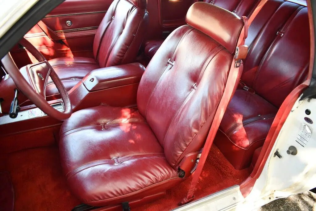 Beautiful Original Very Rare 1979 Chrysler 300 coupe 360ci V8 Engine Automatic Transmission White Exterior Paint is mostly original and has been buffed through In some spots Amazing Red Corinthian Leather Interior Bucket Seats Center Console &