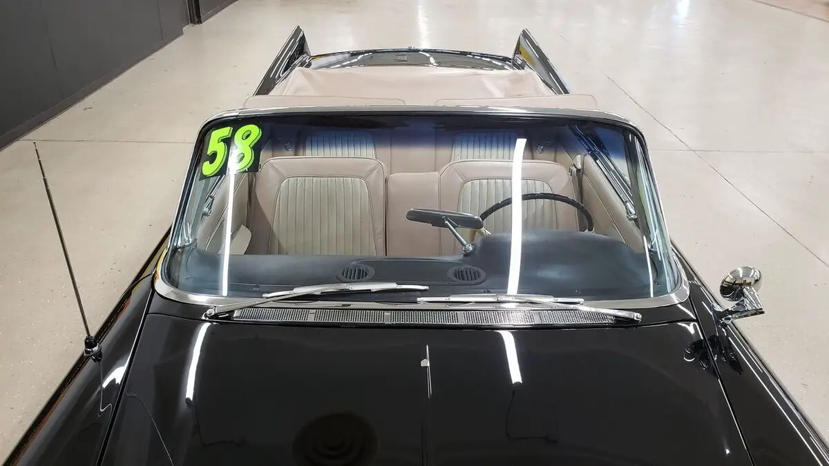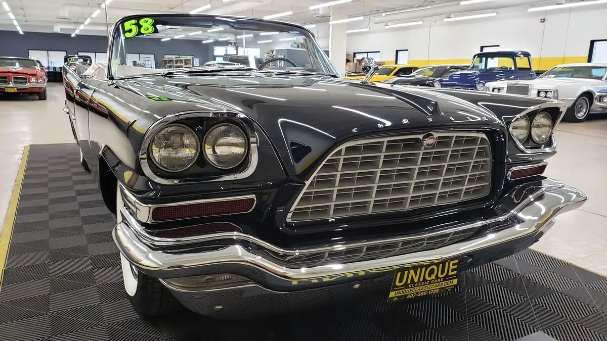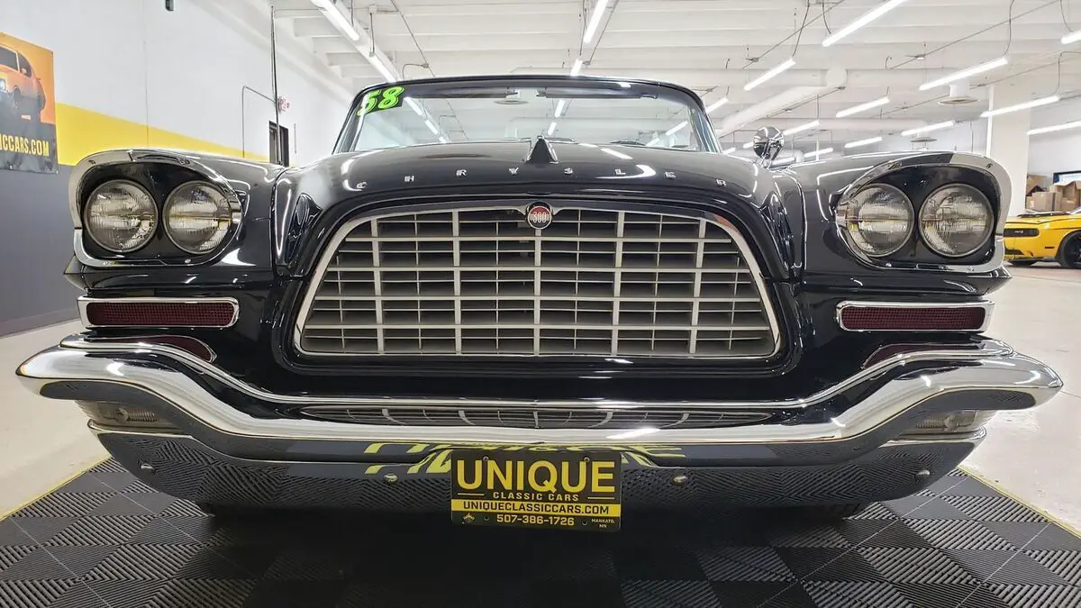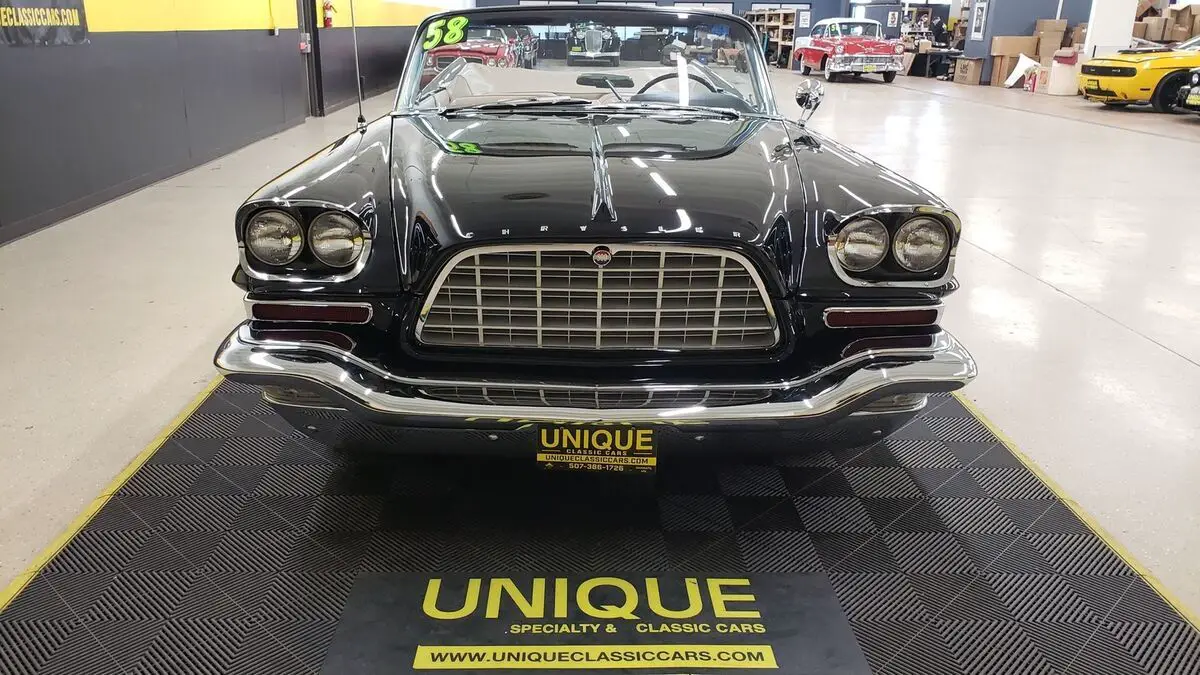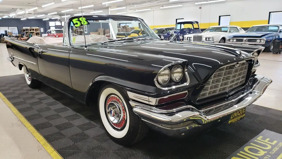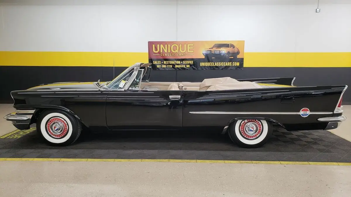 This is a rare one! Only 191 Convertibles produced!!1958 Chrysler 300D Convertible in Raven Black paint, original paint color to this vehicle. This 4-owner car was originally sold in Washington D.C. at a Chrysler/Plymouth dealership in town. the 392ci FirePower Hemi V8 (last year for that engine in the Chrysler lineup) paired with a push-button automatic transmission. Equipped with power steering, dual 4bbl Carrter carbs, and power brakes. This one was restored when the odometer read 67,000 miles. Two very large binders with info and photos of this car during and before restoration done in the late 1990's. Chrome and brightwork in excellent shape and shows well against the gloss black paint. Two-tone Beige/neutral leather bench seat interior. Riding on wide white wall tires (dated 2002, will need to be addressed) with Chrysler 300 wheel covers. Matching beige parade boot will be included with purchase. Original equipment includes: power windows, power convertible top, radio electro touch tuner, and suregrip rear end (3.31:1 ratio). Radio, power top, and power windows are working! Even the clock works! White vinyl convertible top works as it should with a plastic rear window. Top fits well and is in nice shape!