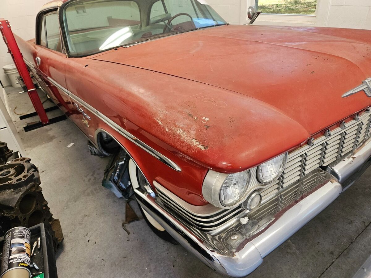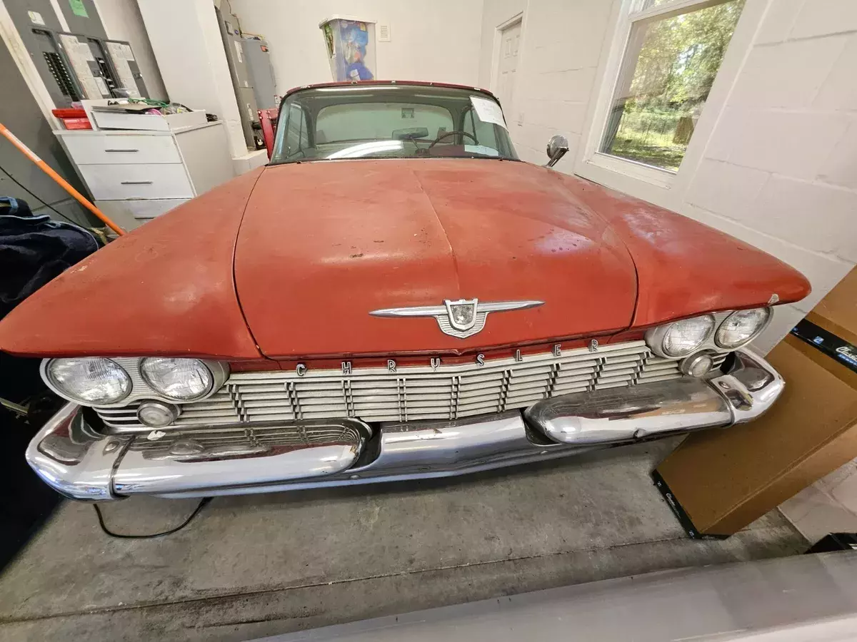 This is a 1959 Chrysler New Yorker with a 413 V8 and automatic transmission. This model is a timeless piece of automotive history, perfect for collectors or enthusiasts of classic Chrysler vehicles.I bought this car the way you see it and I thought I would have time for this project. This car is in exceptionally good shape, only surface rust on the roof. No other rust anywhere. Interior is in excellent shape and needs very little work. Chrome is in good shape. Engine is out of the car and dismantled, looks like heads have been redone, cylinders honed, no noticeable wear on cylinders, crank and bearing journals, seems ready to put together. All engine parts are included. The trunk is full of some new and used parts, mostly trim pieces. Looks like everything is complete. This could make an excellent car for anyone that has the time, Interior almost needs nothing, exterior will need very little work besides sanding and new paint. Please ask any question, good luck bidding on this low reserve vehicle.