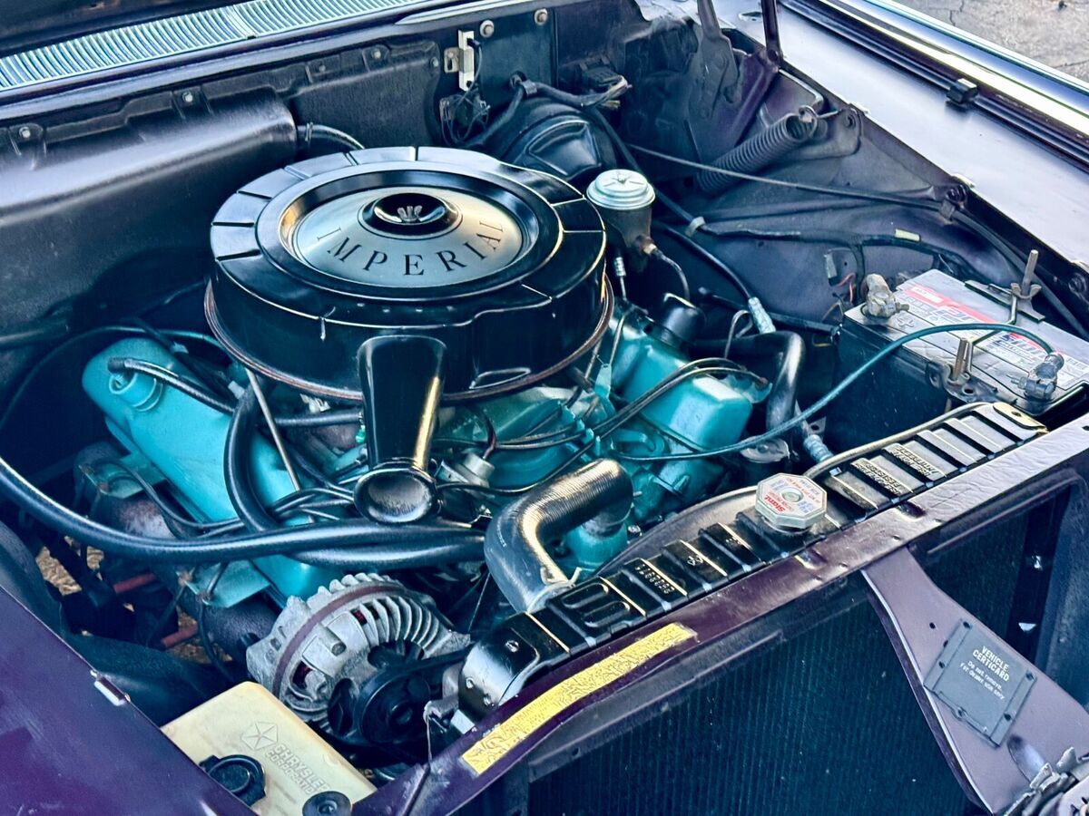 Hello.. Up for bid is a Beautiful 1966 Imperial Crown Two Door Coupe! This is a very original 31,000 Mile Two Owner Survivor that is in excellent condition! The Imperial was Americas Most Luxurious Car in 1966! the original 440CID / 350 HP V8 Engine and TorqueFlite Automatic Transmission. This car is one of the best driving classic cars i have driven - It rides like a cloud down the road and you can steer it with one finger. Nothing made today drives as good as this car does. There is no shakes, pulls or noises. Just an enjoyable drive that will get a lot of attention and pictures taken. Has power steering and power brakes for an enjoyable drive. Finished in the rare Plumb Metallic with black vinyl top that was redone about 10 years ago. The car is all original with one repaint due to age related blemishes but there is zero rust or patches, very solid and straight car. The chrome is in beautiful condition still and glass has no cracking or chips. The body fitments are excellent as expected. You may find a few flaws up close but overall this car is in exceptional condition. The paint color is gorgeous in the sun- I tried to get close up pics of the color but some pictures came out dark. The interior is all original and still looks near-new! The leather seats have no rips, dash has no cracks, carpet is very clean and headliner also looks perfect. The real woodgrain trim also looks very good. The drivers seat has a few wrinkles. The gauges are very clear to read and not foggy, steering wheel has no cracks. Even the pedals look perfect! Everything works on the car including gauges, exterior and interior lights, signal seeking AM radio with foot switch, wipers, etc. It has power windows that also work great. The engine compartment looks original and very nice. Trunk also shows great featuring factory spare tire and jack. The underside is rust free with factory zebarting- they dont come any cleaner! This is not a perfect trailer queen but it is an extremely nice survivor. You can search high and low but this time capsule sets the bar for 60's luxury! Comes with the original owners manuals still in the original plastic sleeve, warranty booklet and maintenance receipts. Has a clean / clear title. If you have any questions or want to make an offer please email, call or text meat586-339-4914. If you are considering having the Imperial shipped we use a reasonably priced, insured shipping company. They are professional and provide very quick delivery service. I can provide you a low price shipping quote if you email me your zip code. If you plan on bidding you must have the funds available to pay for the Imperial. We try to describe all known flaws to the best of our ability. This vehicle is sold As Is No Warranty. We are happy to answer all questions you may have. If you are from Michigan please come and inspect prior to bidding. Please remember: if you buy you must leave a $500 deposit as soon as the auction ends through PayPal. I took many pictures today to illustrate how nice this Imperial is. Please have all funds available prior to making offer and bidding. This is only a seven day auction. We pride true integrity in our auctions and bidding. Please bid with intent to buy. Low feedback (5 or under) Ebayers MUST contact me before bidding! Thank you for viewing. May God Bless you.