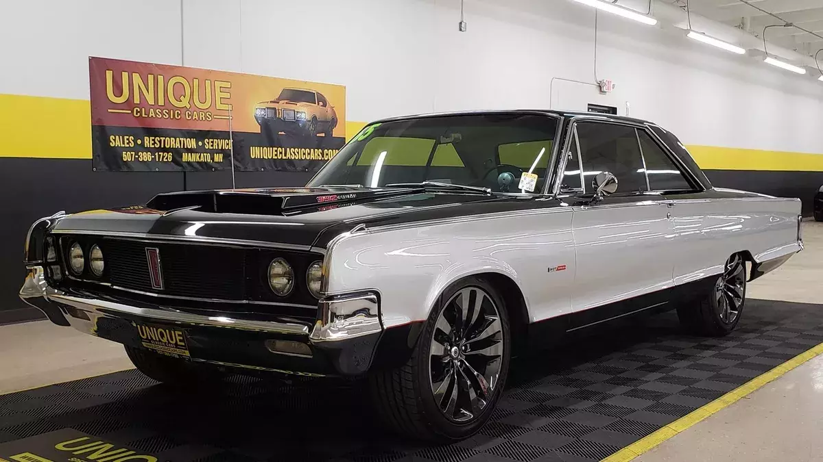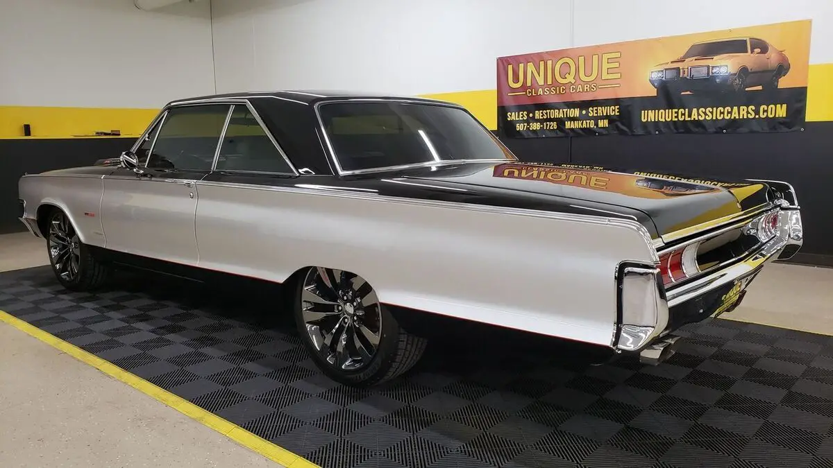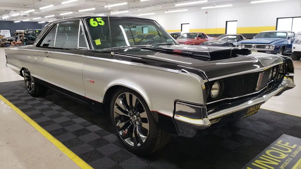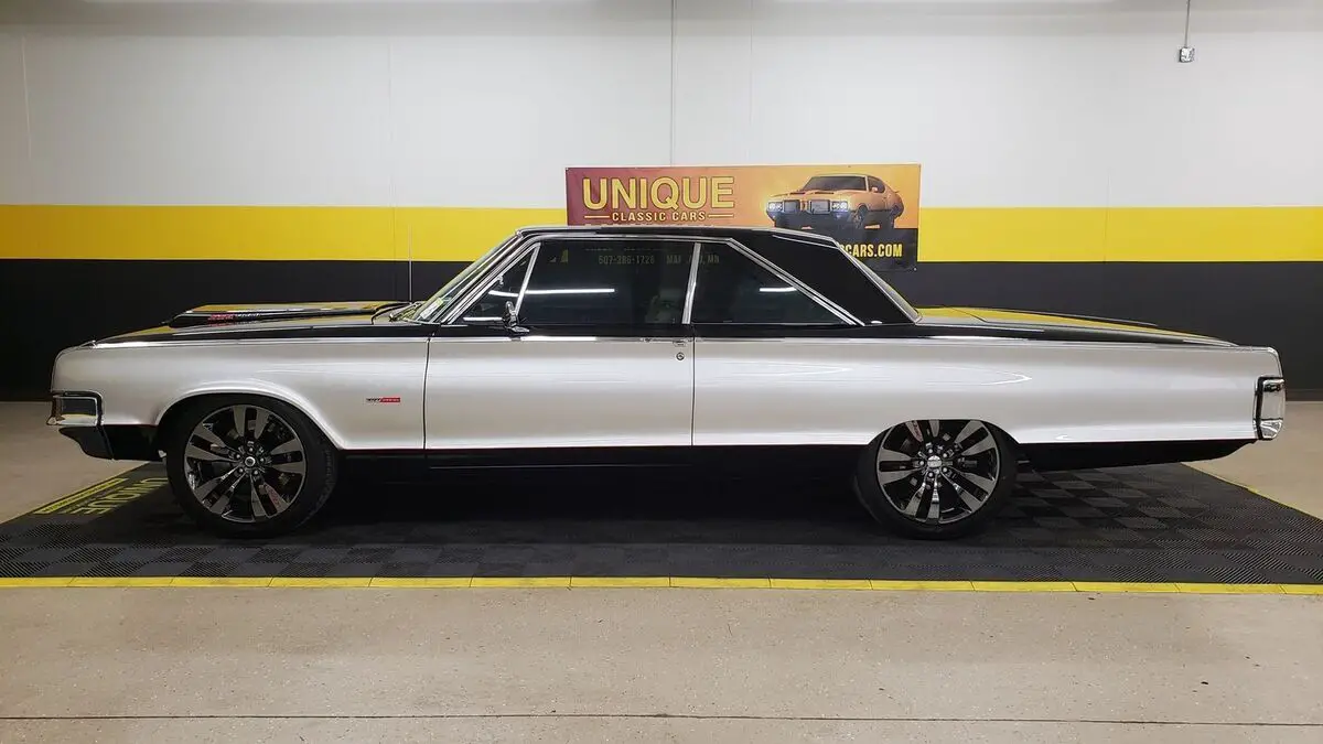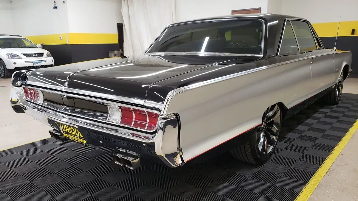 1965 Chrysler Newport 2dr Hardtop in Black and Silver paint. This Hemi-powered Restomod has the 392 V8 under the hood with a 6-speed Tremec manual transmission (out of a 2019 Dodge Challenger). There is less than 30,000 miles on the drivetrain. Equipped with power steering, power windows, power brakes, 4-wheel disc brakes with Wilwood calipers, Hotchkis suspension components, QA1 shocks, Dana rear end (3.91 rear gears), and a/c. Passenger rear window can only be rolled from the passenger side of the car. A/C BLOWS COLD! Brakes are 80% in the front and rear. Chrome and brightwork in good shape overall on this one. Paint looks great as well. Riding on aftermarket 20" SRT smoked chrome wheels. Windows have been tinted, check with local and state laws regarding legal percentage in your area. White/black combo bucket seat interior with center console. Dual exhaust with headers and no catalytic converters. Recent coolant service. Green push button start added to the center console. Tachometer added to the top of the dash as well.