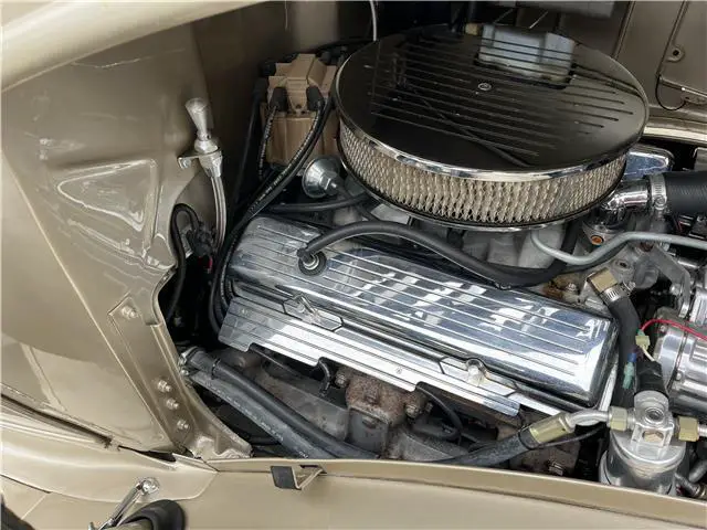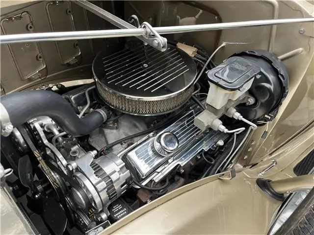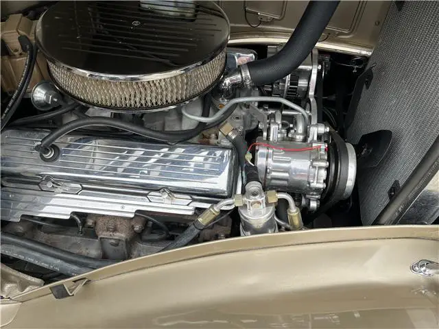It has a completely rebuilt 350 small block Chevy engine. Automatic transmission. Power steering, power brakes, vintage AC, 6 radial tires. Very high end base coat, clear coat paint on a rust-free body. Leather interior, all new gauges, and is a pleasure to drive, anywhere!