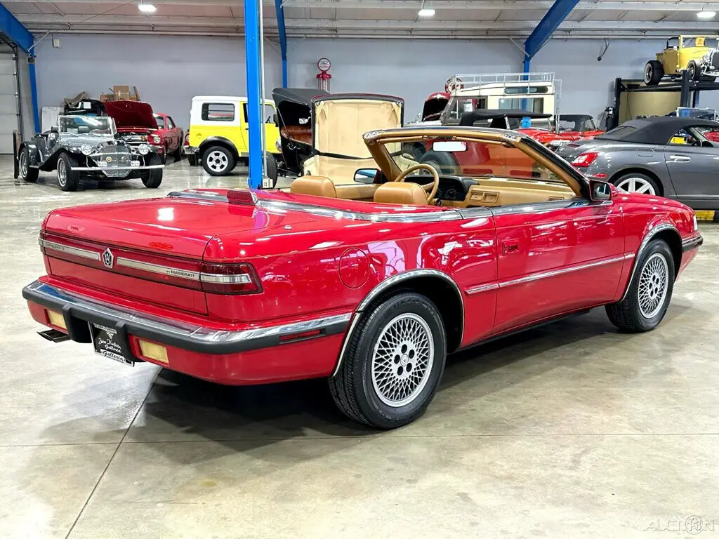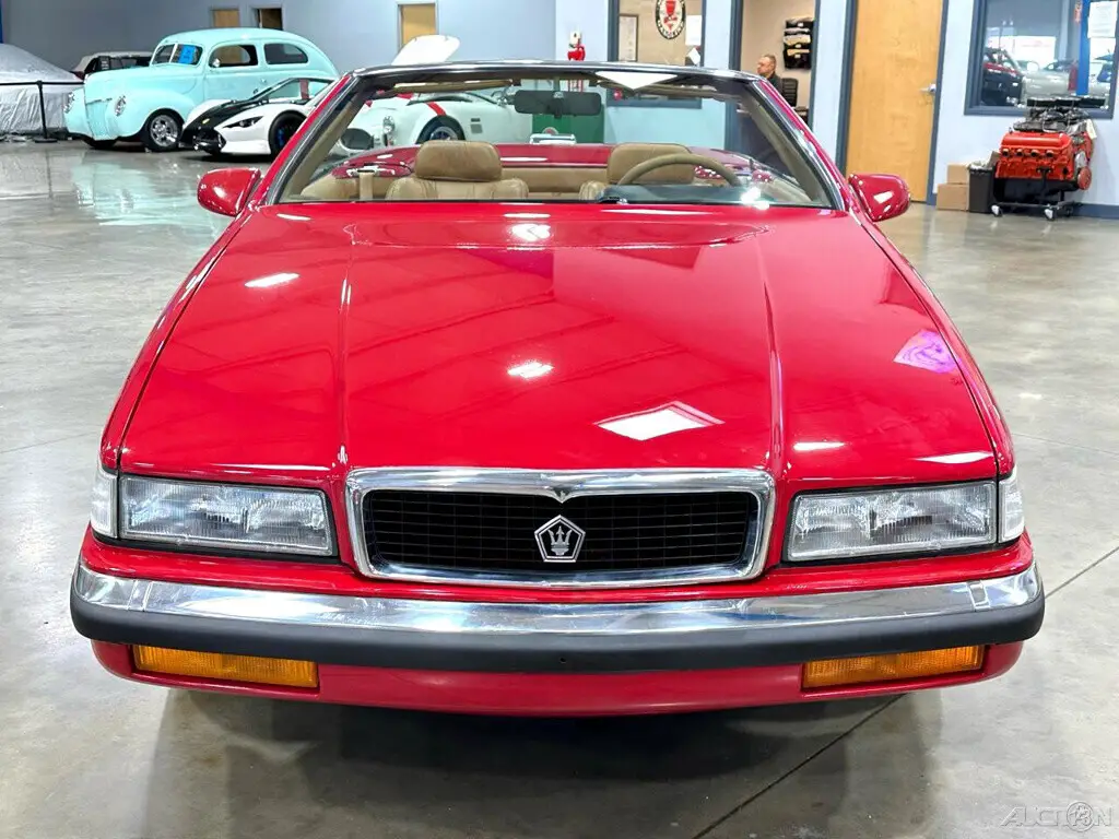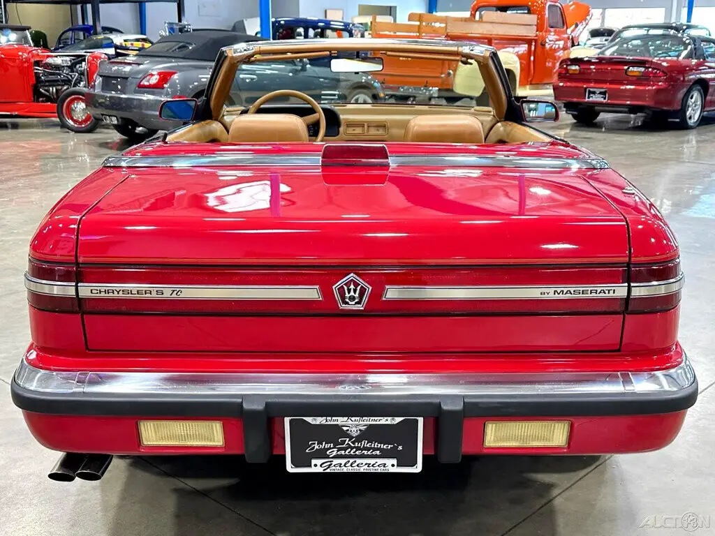 This 1989 Chrysler TC by Maserati shows 29k miles, Clean CarFax Report showing No Accidents and recent service. The report shows long time owner history in Oregon until 2024 when the vehicle was purchased by an Auto Collector/Broker. The car is currently located in our showroom in Salem, OH and is a magnificent example of a limited production car that was a joint venture of long time friends, Lee Iacocca (CEO of Chrysler) and Alejandro De Tomasso Pantera (Owner/CEO of Maserati). This is one of 3,764 produced and is finished in Exotic Red Clear Coat over Ginger leather. The TC is powered by a turbocharged 2.2-liter inline-four paired with a three-speed automatic transaxle. Features include a body-color removable hardtop with opera windows as well as a black convertible soft top, 15" lace-style alloy wheels, four-wheel disc brakes, power-adjustable seats, an Infinity cassette stereo, cruise control, and an Ultimate sound system. The car was built in late-1988, and it features a cabin without wood trim as well as a factory installed non-airbag steering wheel.