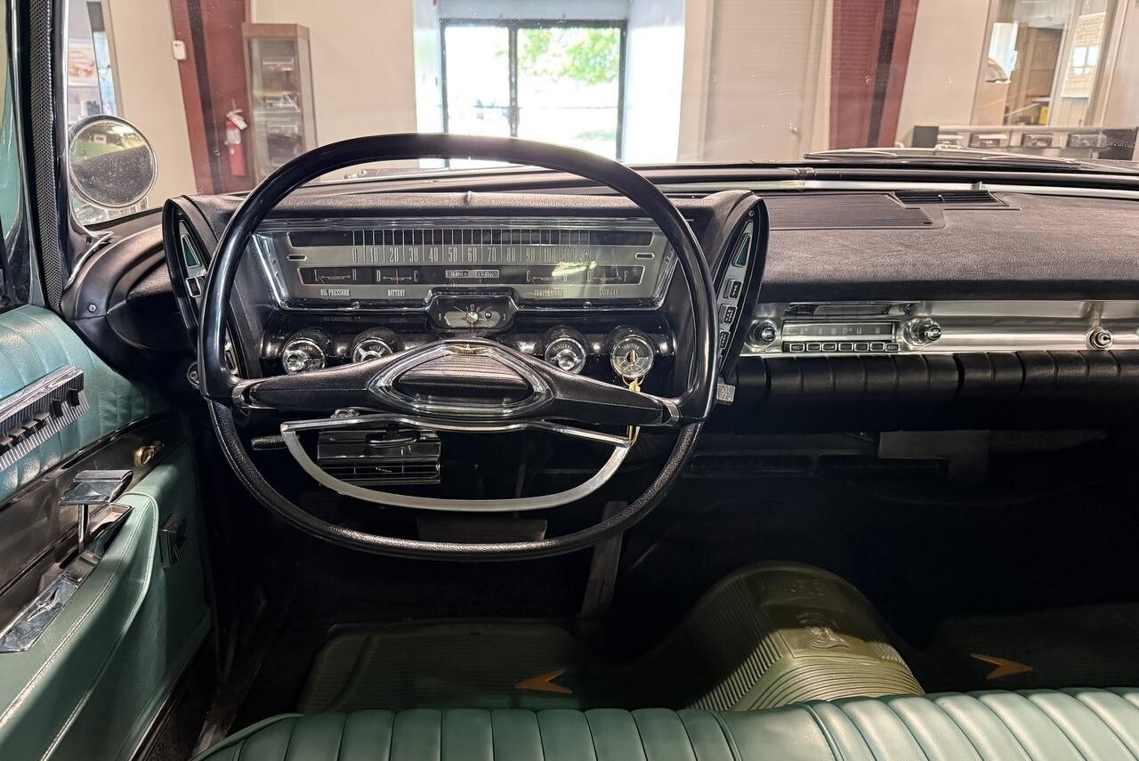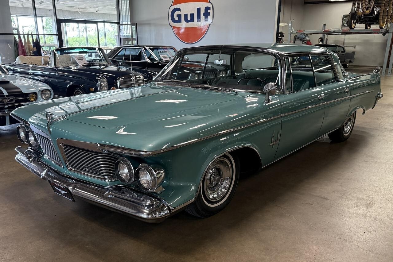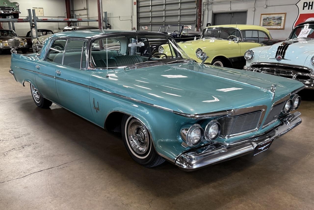 This nicely presented 1962 Imperial Crown Sedan is a distinctive classic driver, offered with the odometer indicating just 10,178 miles at the time of listing. Finished in Green paint over a matching interior, it provides a refreshing break from the far more common Cadillacs and Lincolns of the era, with its presence heightened by the squared-off steering wheel and unique electroluminescent instrument display. Abundant power is delivered by Chrysler's renowned 340 BHP 413 CI 'Wedge' V-8 engine, paired with Chrysler's pushbutton-shifted Torqueflite 3-speed automatic transmission. Features and amenities include an AM radio and power windows. Steel wheels, mounting full-diameter bright wheel covers, and Whitewall tires provide road contact. Contact us to arrange a viewing, obtain more details, and prepare to make this visually striking and powerful Imperial yours today!