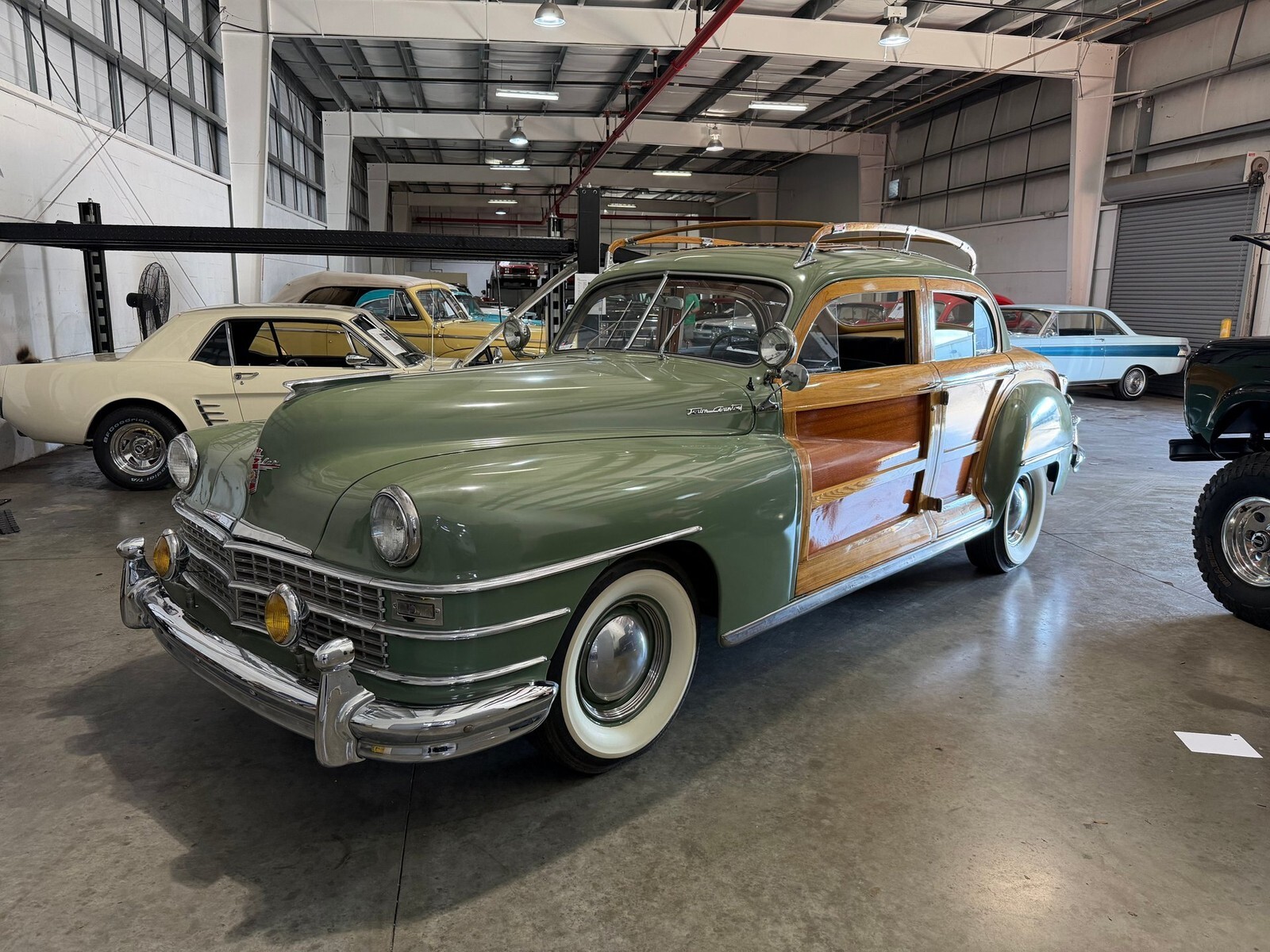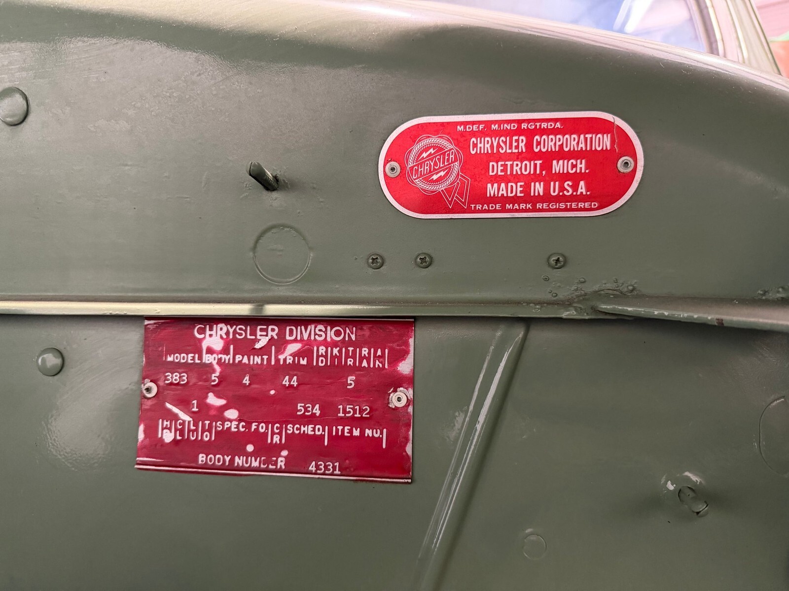 This example is finishedin correct Sea Mist Green over lovely green leather with Highlander plaid inserts. Although it is an older restoration,the level of craftsmanship and attention to detail still shines more than 20 years later, thanks in no small part to its careful upkeep. It is powered by a correct 251 CI L Head inline six cylinder engine, mated to a 3 speed column shift automatic transmission. This Town and Country also features an incredible wooden roof rack as well as dual remote spotlights.
