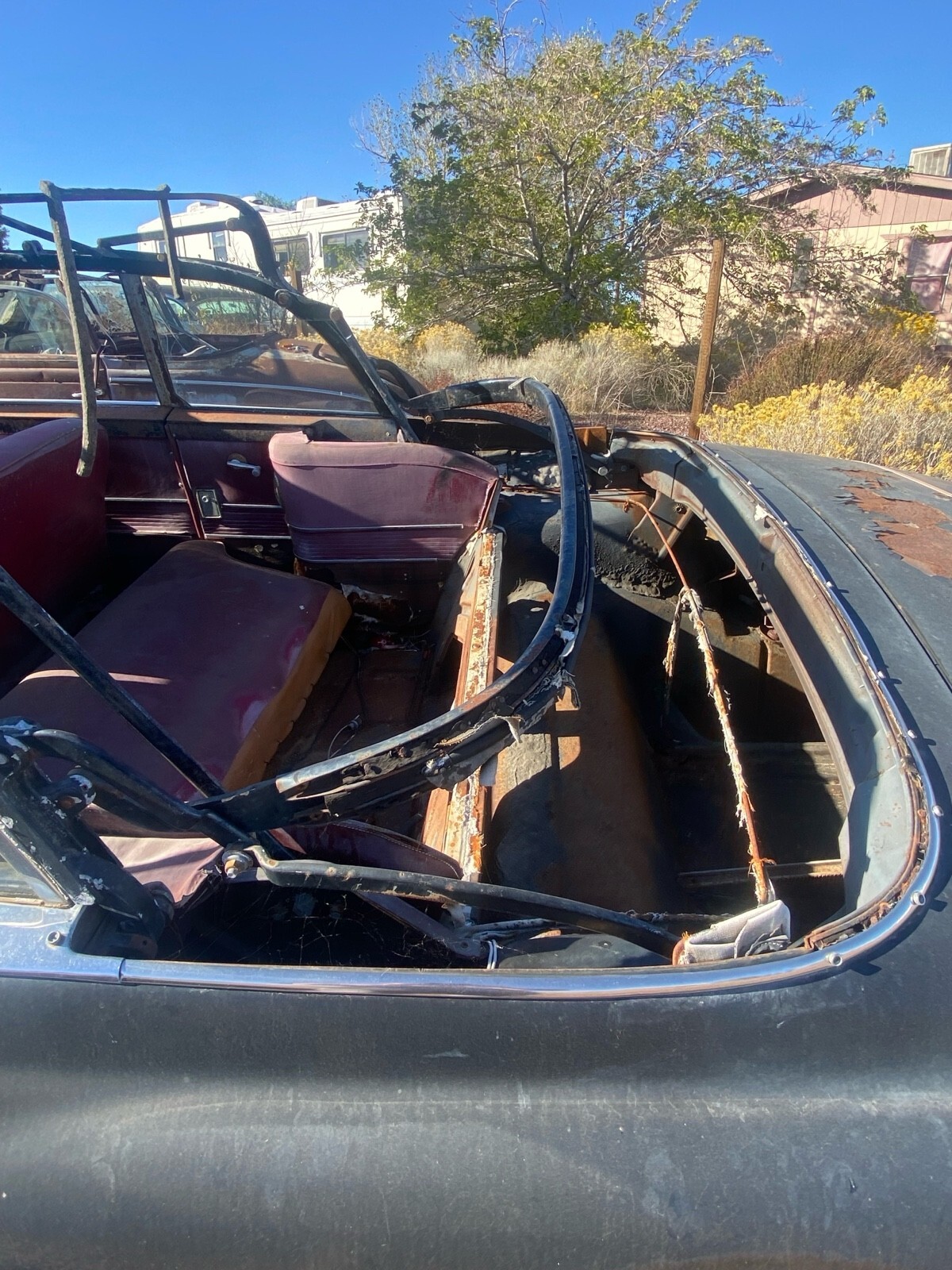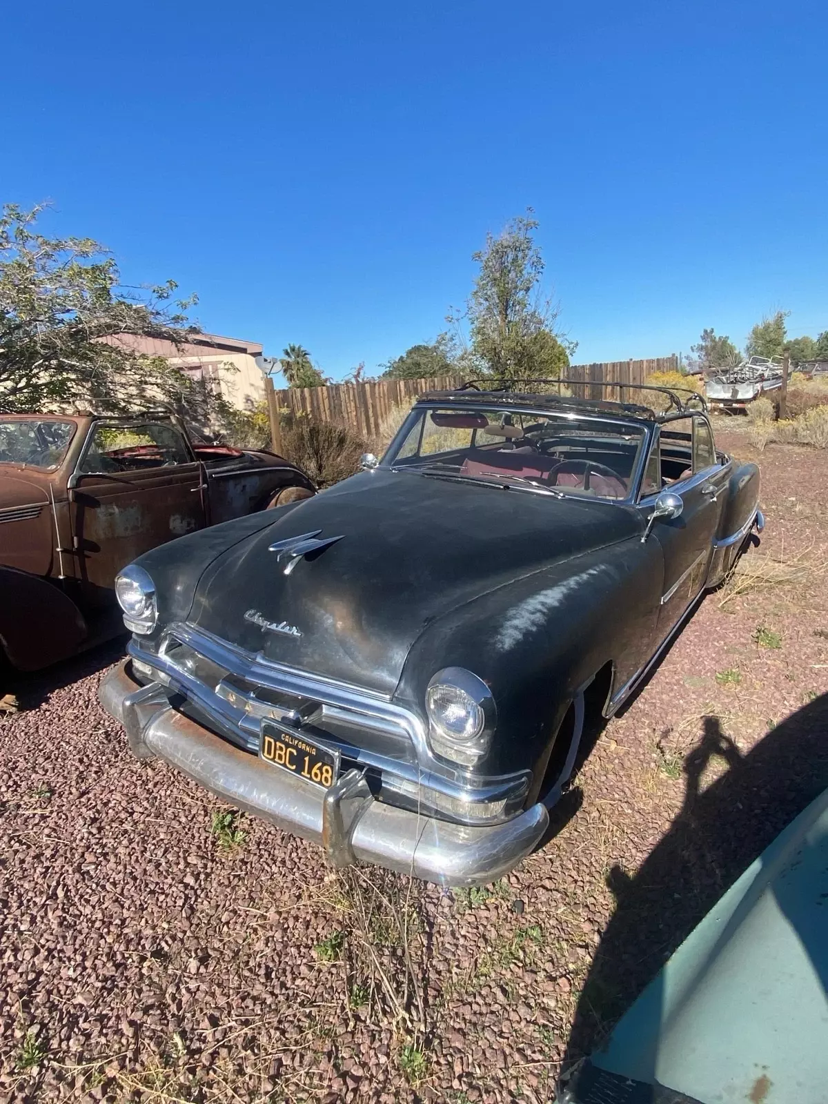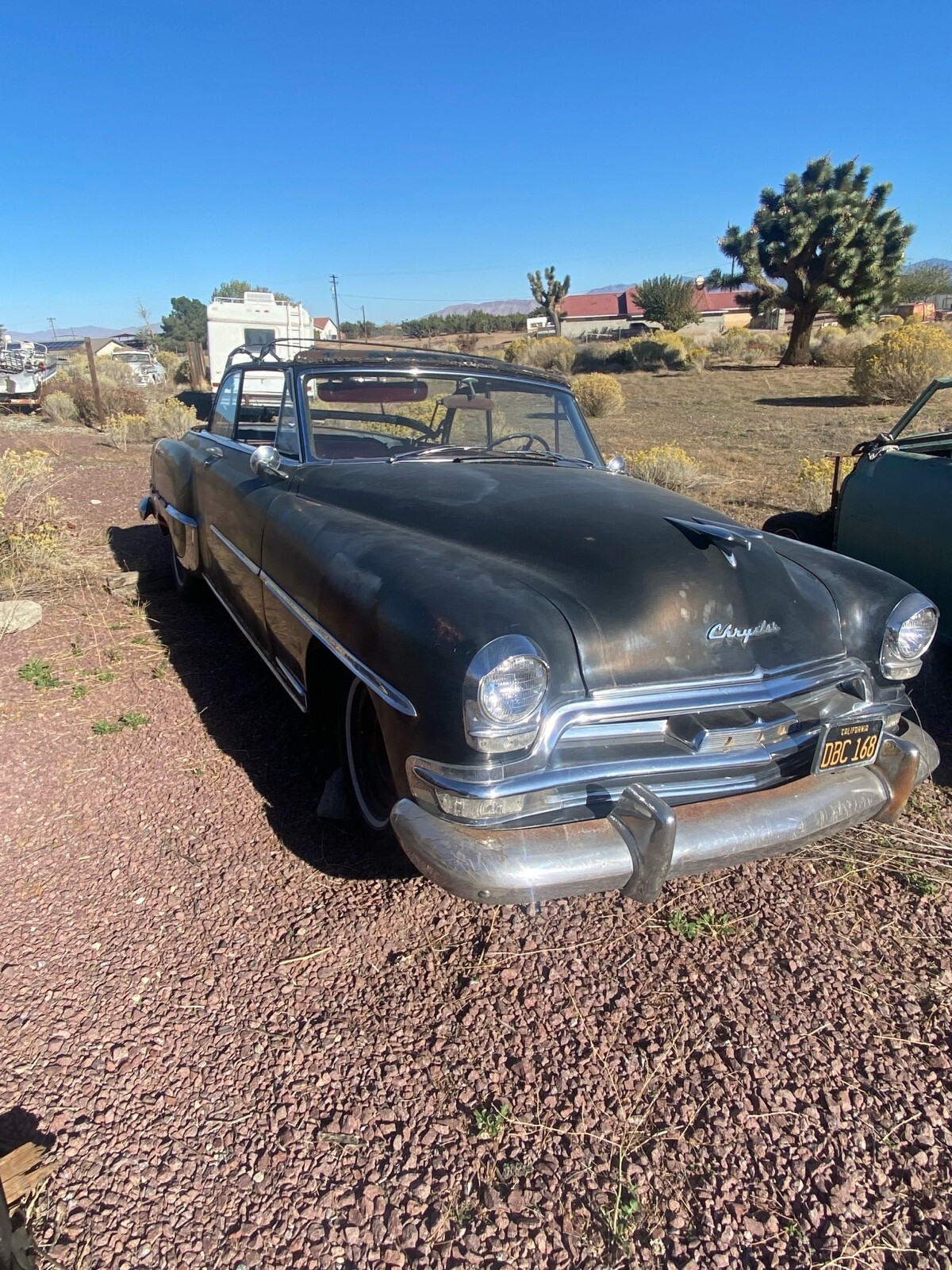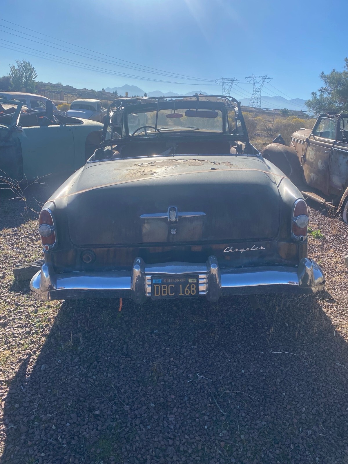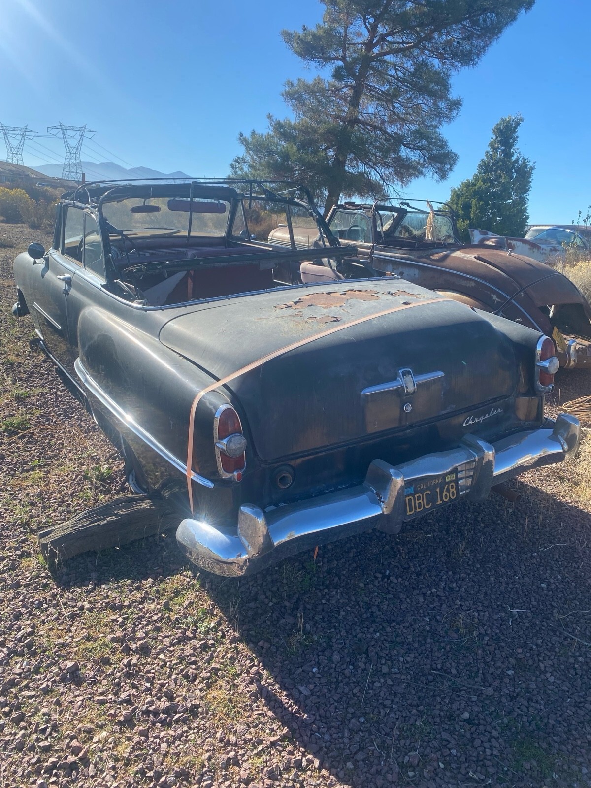 The 1954 Chrysler Windsor Convertible. Very solid car but does have its areas: corner of door, rear quarter area, & drivers outer rocker(all areas photo). Cars all there might be missing a chrome molding. Motor tagged stating it was rebuilt while ago does turn & I got the carburetor & fuel pump rebuilt just haven’t put it together. Car will run with little work & TLC .