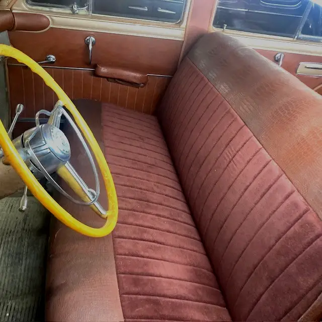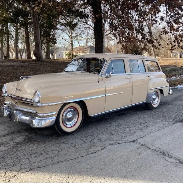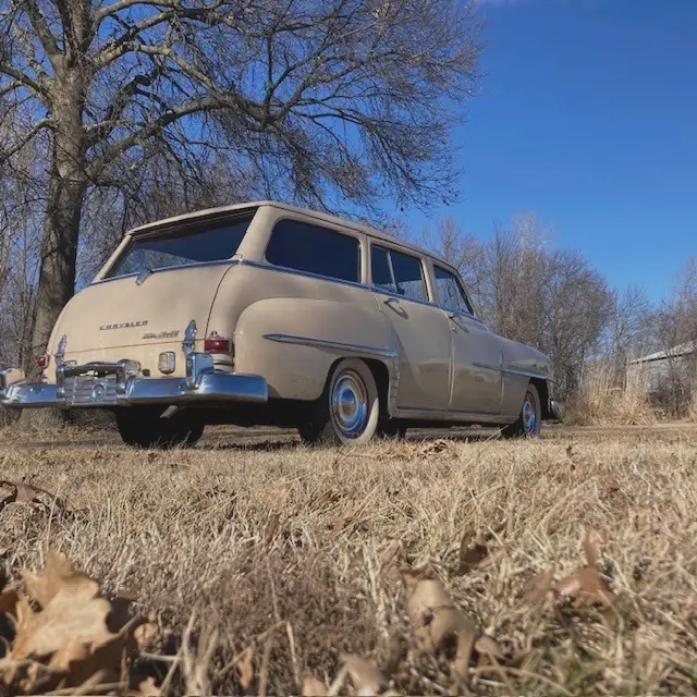 This Windsor Town & Country Wagon has the shortest wheelbase and shortest overall lengthof any of the 1951 Chrysler Wagons. It is not restored but stilloffers some amazing original attributes, especially when one considers its75-year-old historyWe have ownedthis automobile for nearly 20 years, and it has been in the back storage area ofDowntown Desoto, an automobile museum in Clinton, Missouri.During the spring of 2024our Town & Country was brought to the sunlightand fired up. The gas tank was cleaned, new points were installed,the oil was changed,the wide whitewall tires were checked, and we were on our way. We have driven it sparingly sincethat time. At a distance the paint is presentable however most buyers would definitely want a repaint/rechrome restoration done.