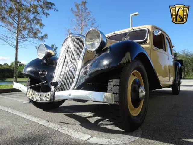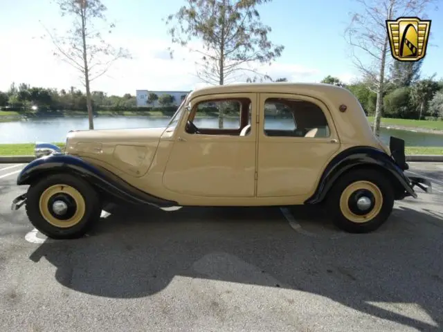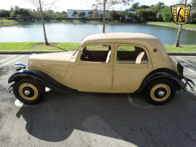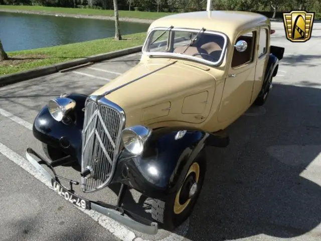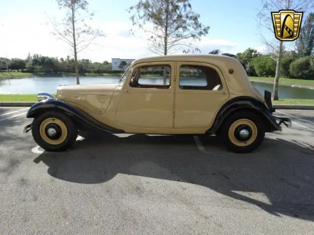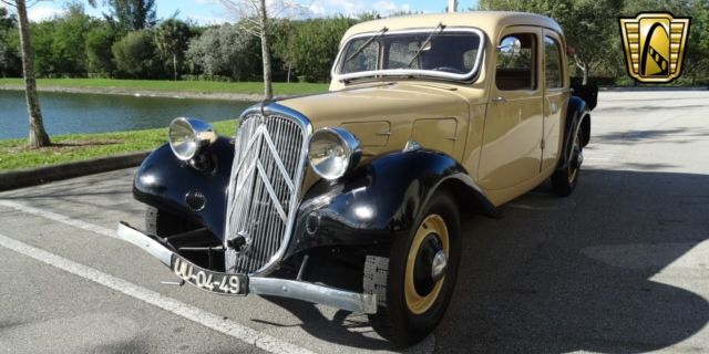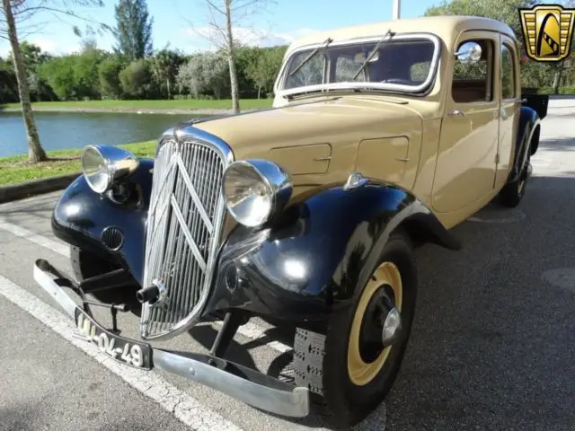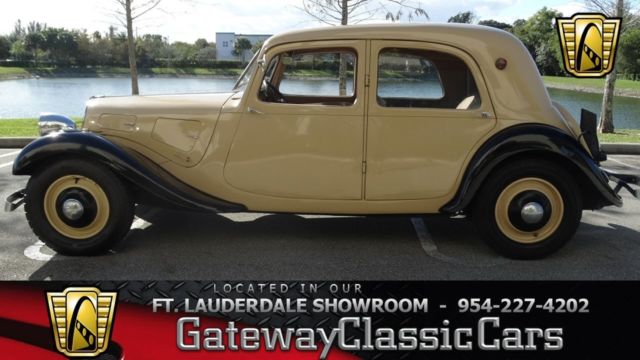 For sale in our Fort Lauderdale showroom is this classy 1935 Citroen Traction Avant. The Traction Avant is considered an executive car that was produced by the French manufacturer Citroen from 1934 to 1857. This car pioneered mass production of three revolutionary features that are still in use today. A unitary body with no separate frame, four-wheel independent suspension, and as the name states in French, "Traction Avant" which means front-wheel drive. This is truly a beautiful looking foreign classic car. This particular Citroen was purchased and owned in Portugal in 1935 and babied until 2009 when it was sold and shipped to Miami Fl. Since reaching the States, it has been garage kept and only driven 30 miles. It's time to let this little beauty do what she was meant to... accrue mileage! The classic beige & black colored exterior goes so well with the super clean, plush brown clothe interior. 4 cylinder engine and a 3 speed manual transmission this Citroen will get you to your destination in class, style and comfort. With four doors and a very spacious backseat, packing the family into this pretty little piece of history is never a problem. Sure to stop traffic, this awesomely preserved classic is perfect for a weekend drive, car show, or parade showing. Let this blast from the past drive you into the future! Don't miss the chance to own this classic 1935 Citreon.