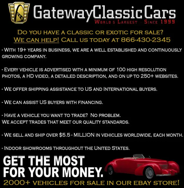 To see 100+ HD pictures and videos of this 1935 Citroen 7CV, please visit For more information or to schedule an appointment to view car in person, please call the Fort Lauderdale showroom at 954-228-1049 or email us directly at