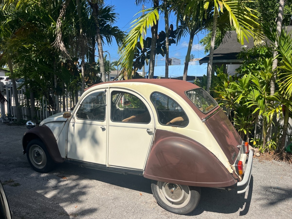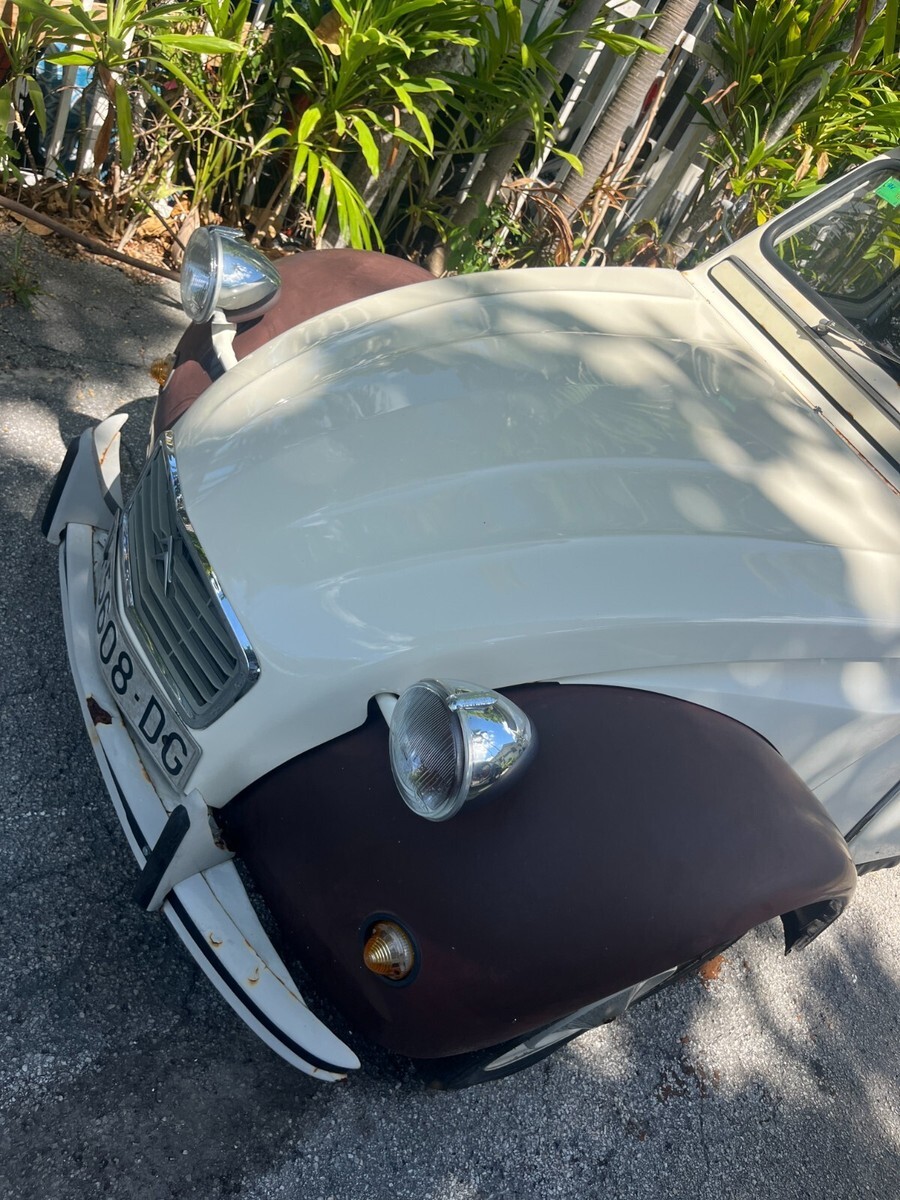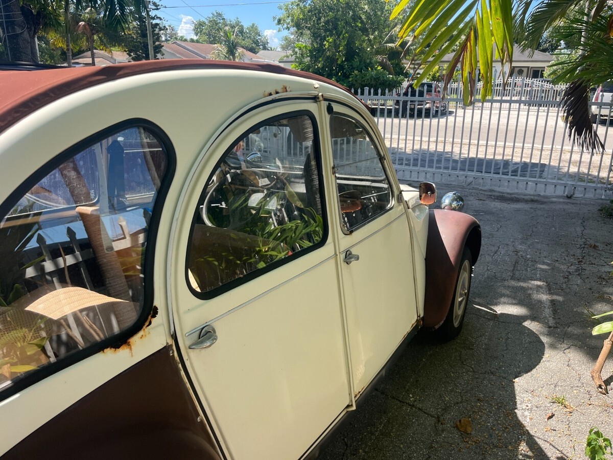 Up for sale is a 1977 Citroen 2cv. Please note this is a project car and will need TLC and work to make road worthy. It was purchased with intentions of restoring but now that has changed. Car is 100% complete parts wise and did run and drive when parked. Will need a fresh battery and fuel to start. Tires are dry rotted and all four will need to be replaced. Does roll, steer and brake just fine. Very complete starting point to continue the restoration or use as a parts car (would be a shame to part out). All doors open and close and nothing is missing. Interior and top are in great condition. There is some rust around the body as can be seen in pics. Car is being sold as is and this is a no reserve auction. Welcome to stop by and do a pre auction inspection. Free delivery from Miami to West Palm beach or Homestead. Clean Florida title in hand. Happy to assist with any shipping worldwide can also assist in loading onto truck. Thank you