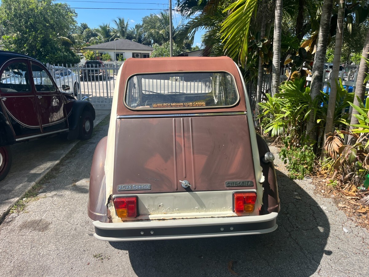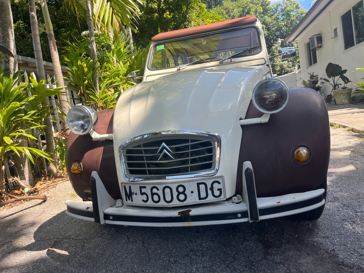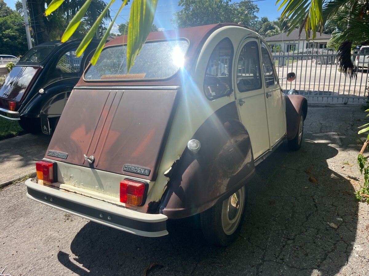 Up for sale is a 1977 Citroen 2cv. Please note this is a project car and will need TLC and work to make road worthy. It was purchased with intentions of restoring but now that has changed. Car is 100% complete parts wise and did run and drive when parked. Will need a fresh battery and fuel to start. Tires are dry rotted and all four will need to be replaced. Does roll, steer and brake just fine. Very complete starting point to continue the restoration or use as a parts car (would be a shame to part out). All doors open and close and nothing is missing. Interior and top are in great condition. There is some rust around the body as can be seen in pics. Car is being sold as is and this is a no reserve auction. Welcome to stop by and do a pre auction inspection. Free delivery from Miami to West Palm beach or Homestead. Clean Florida title in hand. Happy to assist with any shipping worldwide can also assist in loading onto truck. Thank you