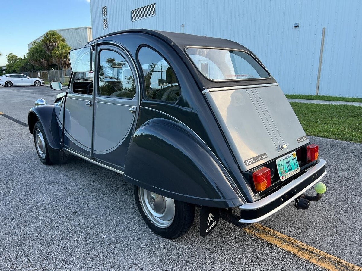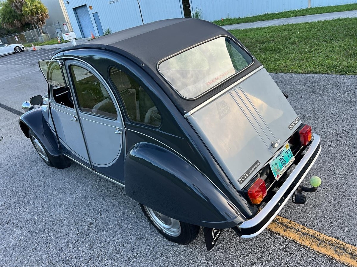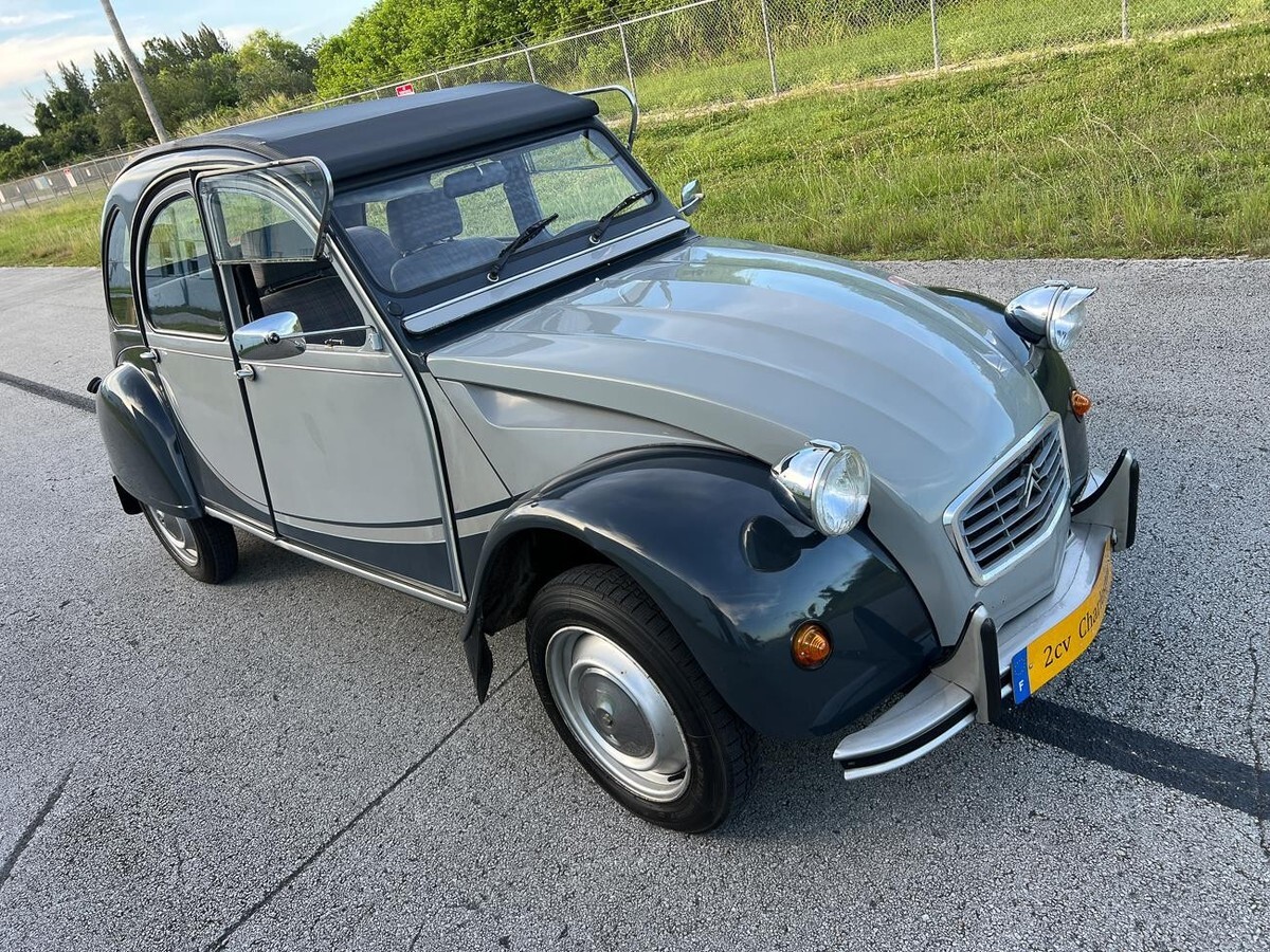 Vehicle Original VIN : CITROENFor Sale is 1985 Citroen 2CV Charleston is said to have undergone a cosmetic refurbishment by previous owner and is finished in original color combo. Comes with full spare parts and luggage rack. Power is supplied by a 602cc flat-twin paired with a four-speed manual transaxle, and additional features include full ragtop, removable metal-frame seats, rear tow hitch, 15” steel wheels with chrome hubcaps, pop out front windows. Clean FL title. Recent tune up was done. Has Driver and Passenger windows that flip up! The 2CV Charleston is the most luxurious model in the 2CV series and is characterized by, among other things, the round headlights, two-tone paint, chrome details and luxurious upholstery with a diamond pattern.Check out my walk around video!Feel free to come see the car in person. Any inquires contact me. $500 non-refundable deposit required within 24hrs of buying. Sold As-is. Thanks for looking. Like any classic cars theres always your normal wear and tear. For those interested you can call me at 305 five four two 5662. If I don't answer just leave me a voicemail.If you’re looking to finance I would recommend JJ Best. They can finance your classic car or hot rod and are very pleasant to work with.