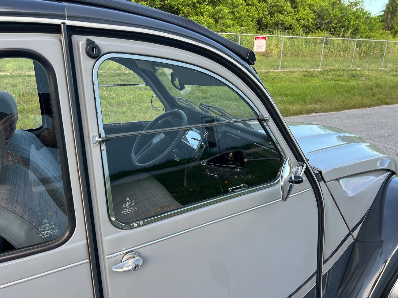 The 2CV Charleston is the most luxurious model in the 2CV series and is characterized by, among other things, the round headlights, two-tone paint, chrome details and luxurious upholstery with a diamond pattern.