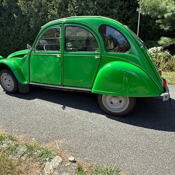 Turn heads everywhere in this charming Bamboo Green 2CV6, imported from Rouen and accompanied by import paperwork, books, and a clean Massachusetts title