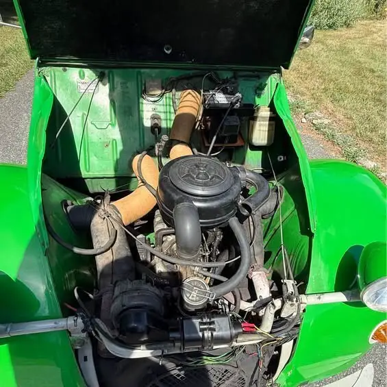 Specs & Features:• Matching Bamboo Green repaint & rollback soft-top• 602cc air-cooled flat-twin (29 hp)• 4-speed manual – pure analogue joy• Iconic single-spoke steering wheel & patterned cloth interior• Detailed service records and books included