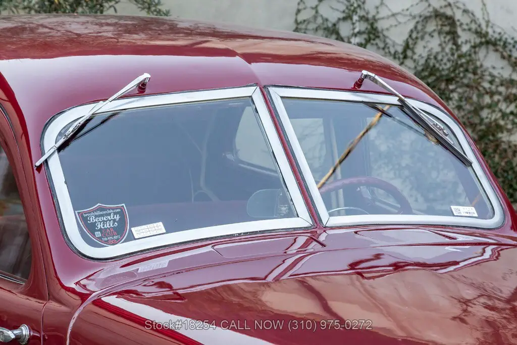 Equipped with a 4-speed manual transmission, 8-cylinder engine, Stormberg single-barrel carburetor, dual exhaust outlets, four-wheel drums, chrome bumpers, louvered wraparound grille, chrome trim, dual wipers, steel bumpers, three-spoke steering wheel, rear-hinged front doors, 16-inch steel wheels, BFGoodrich tires, and a spare tire. Featured amenities include comfortable bench seating, dash-mounted rearview mirror and an analog clock.