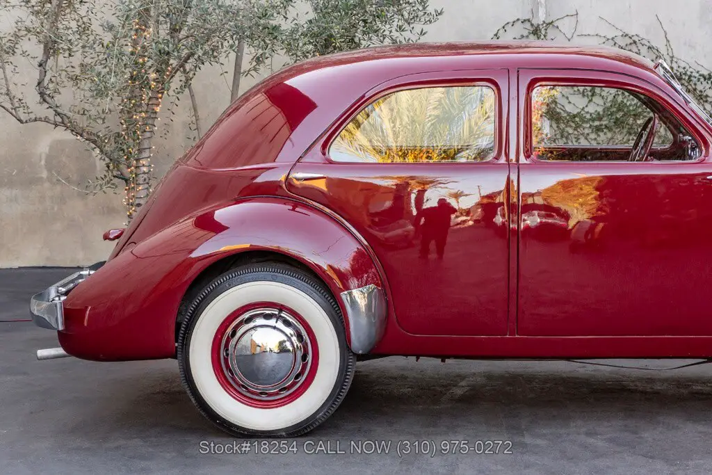 Introducing this 1936 Cord 810 Westchester Sedan that is finished in a Red paint color combination that exudes timeless elegance and sophistication. Step inside the cockpit and be greeted by a striking burgundy interior that perfectly complements the exterior, creating a cohesive and luxurious ambiance.