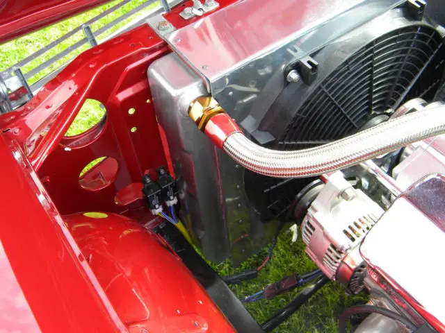 17. Braided cooling lines ran in the frame rails exiting in front radiator support into cooler. Very clean installation.