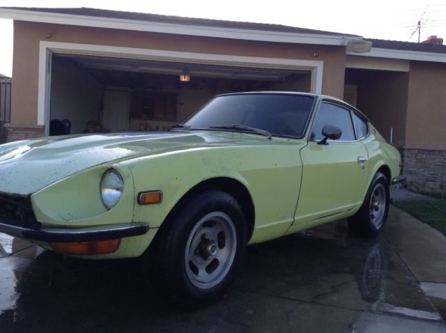 This a rare lime yellow 1972 Datsun 240z. It's a great 240z series in need of a restoration. Factory ac car. 4 speed transmission. The body is all there except the floors are rusted. The rails are all good. This is a late model 71 built 10/71. One owner. All original. Call for more info