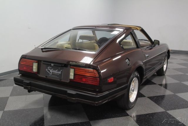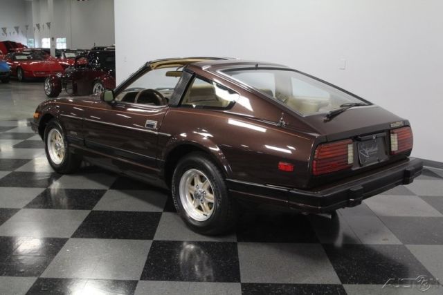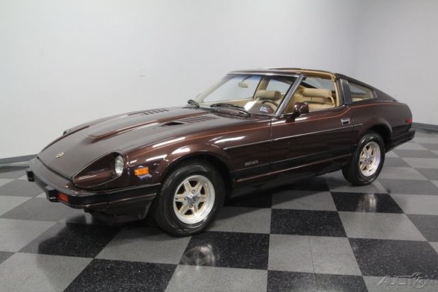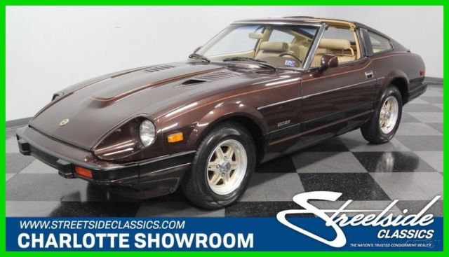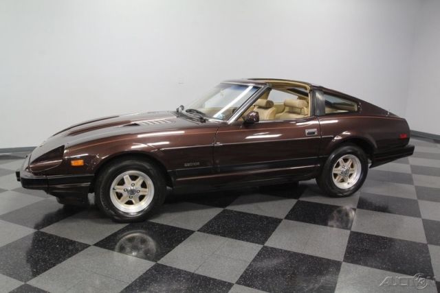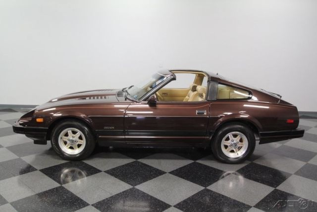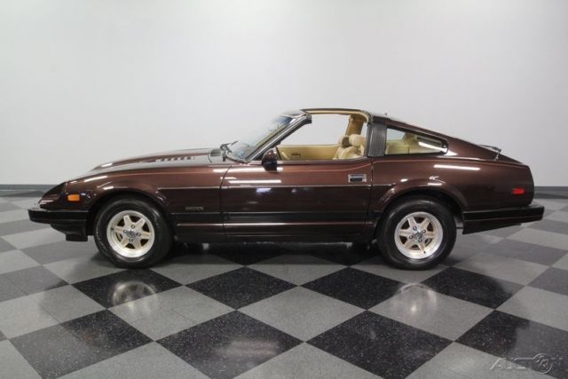 T-tops, five-speed, low-mileage, and one-family owned - this 1982 Datsun 280ZX already has an attractive performance classic car pedigree... and that's before you dig into the ideal mix of preservation and restoration on this loaded coupe. The factory-correct Dark Brown Metallic represents the era so well. With a full respray, it has a great luster to make it absolutely attractive in modern times. Plus, this Z-car gets its details right with the full pin striping package that highlights the power bulge in the hood and the kick-up in the rear fender. And those factory alloys with the gold inserts do a great job of standing out while blending in with the total package. We are really beginning to appreciate how sporty these second-gen Z-cars look with their sharper edge profile and dual NACA scoops in the hood. This one does it particularly well, because it has been under the care of the same family all its life, and it has averaged less than 1,900 miles annually. Open the door to a terrific pair of bucket seats. This is the optional leather and suede package, and low mileage means it still looks great. The sports steering wheel gives you a clear view to the large speedo and tach, so this is a great place for grand touring comfort. A sports car like this came with plenty of factory options like power windows, power locks, alarm system, cruise control, and AM/FM/cassette stereo. Everything works, right down to the Z-car's iconic tri-pod gauges in the middle of the dash. The T-tops even still have their factory storage bags. Since the air conditioning is still blowing nice and cold, feel free to take the roof panels out all summer long! The fuel-injected 2.8-liter motor is what will make it so hard to resist adding extra miles to the low odometer. This original engine is one of the legendary smooth and rev-happy motors that helped establish Datsun/Nissan as an exciting brand of cars. It looks like there's a lot going on under the hood, but the SOHC inline-six is easy to spot and makes a wonderful baritone exhaust note that's a big part of this Z's allure. The good care means the motor is in outstanding condition, and all the factory stickers and markings seem to still be in place. If you do to choose to enjoy this 280ZX on the road, you'll be rewarded with the perfect harmony of the five-speed manual transmission, fully independent suspension, and four-wheel disc brakes. Complete with owner's manual and service manuals, this coupe is looking for a new family to cherish it. Will it be you? Call now!