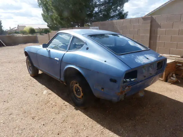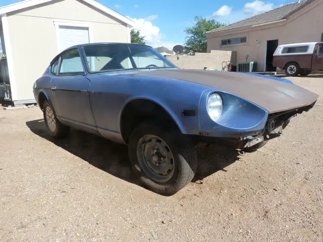 This is a 9/72 Datsun 240Z rolling chassis ready for restoration, or conversion.This is a rolling chassis with no engine, no transmission, no differential and no fuel tank. The body is straight with the exception of multiple dings. There is rust in the usual places. Badly rusted areas or the floor pans have been cut out, as seen in the photos. Doors, hatch, and hood operate normally.An inspection of the frame rails, wheel wells, shock towers, all are as they should be. The roof shows NO distortion. The glass is good, the windshield has scrapes from the wipers. The headlight buckets are metal, not fiberglass, and are intact, having good housings. The paint is blue, the original color (no. 115). Good muffler, header and tailpipe will come with the car.All gauges are present, not the clock. Steering is good. Parking brake works, brakes need fluid and adjustment. The heater and housing, fan and A/C housing are present, but controls are missing. Inside window cranks are missing, as are most all of the interior parts. Seats are missing. There are no rear lights. Please carefully view all photos of the car as this is what you are getting.The car has clear AZ title. If the car is being titled outside of the State of AZ, the purchaser will have to take care of all taxes and fees for their home state. I will assist transport company with pickup. ALL TRANSIT COSTS ARE TO BE PAID BY THE BUYER.This roller is for sale locally and I reserve the right to end the auction.Datsun Z cars prior to 1974 are getting to be hard to find. If you have any questions, feel free to "ask seller a question". I will be prompt with the answer. Thanks.