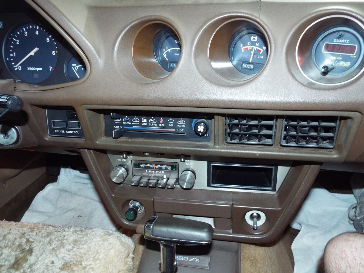 The dashboard has gages for just about every function on the vehicle; the radio is still the original Datsun stock AM/FM unit with joystick sound balance controller!