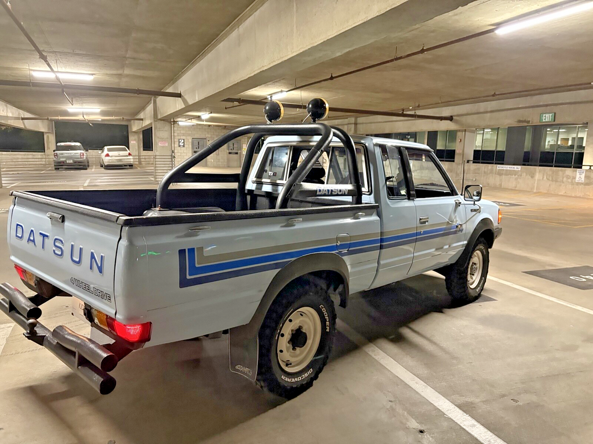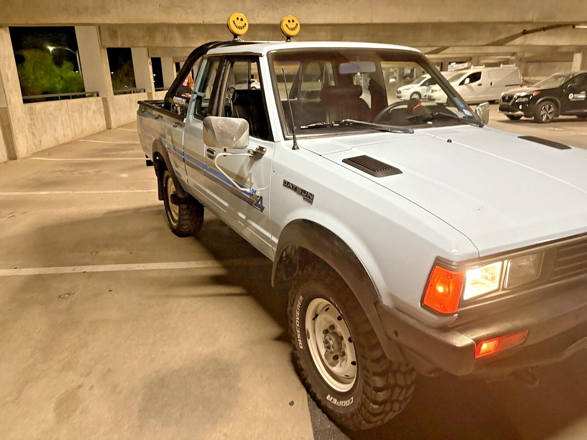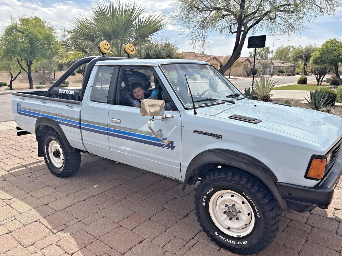 1982 Datsun 720 King Cab 4x4, 89k Miles, Stock Z22 Survivor – Phoenix, AZMeet “Little Bluey,” my 1982 Datsun 720 King Cab 4x4, a true stock survivor with just 89,000 original miles. This extended cab pickup runs and drives like it should, powered by the iconic Z22 2.2L inline-4 engine and a 4-speed manual with 4WD. The black interior is near-perfect—no rips, no tears, a pristine headliner, and a clean dash. The blue exterior, a recent repaint, shines nicely but has minor overspray on moulding, rubber, glass, and bed liner specks on paint—easy cosmetic fixes for a detailer. Recently refreshed with $500 in mechanical work (oil change, new filters, brakes checked), it’s ready to roll. Features include AM/FM stereo and air conditioning. With a clean title, three owners, and partial vehicle history, this rare Datsun draws crowds wherever I take it with my son. Valued at $27,000 by CarGurus (per Hagerty/State Farm quote). Located in Phoenix, AZ—local pickup preferred. I’m open to trades for 1960-1980 American muscle cars (e.g., Road Runner, Nova, GTO, Grand National); send serious trade offers via eBay messages with details. No reserve, starting at $13,500—bid now or grab it at $18,500 Buy It Now to own this classic 4x4 gem!