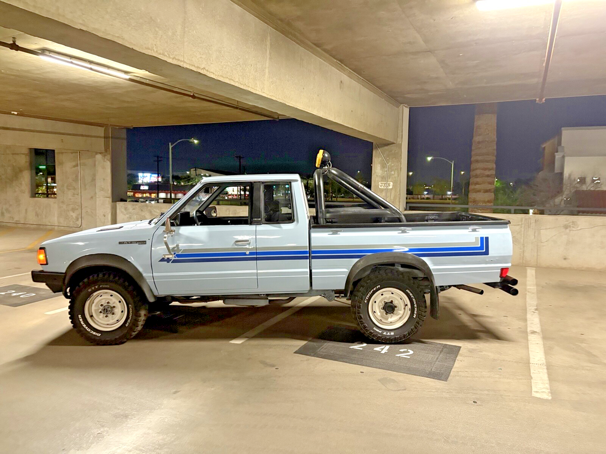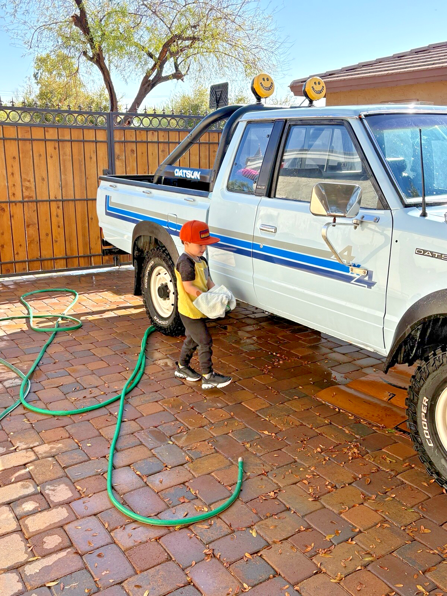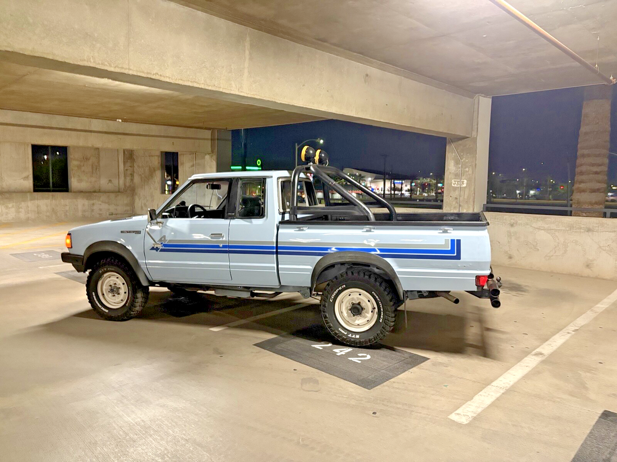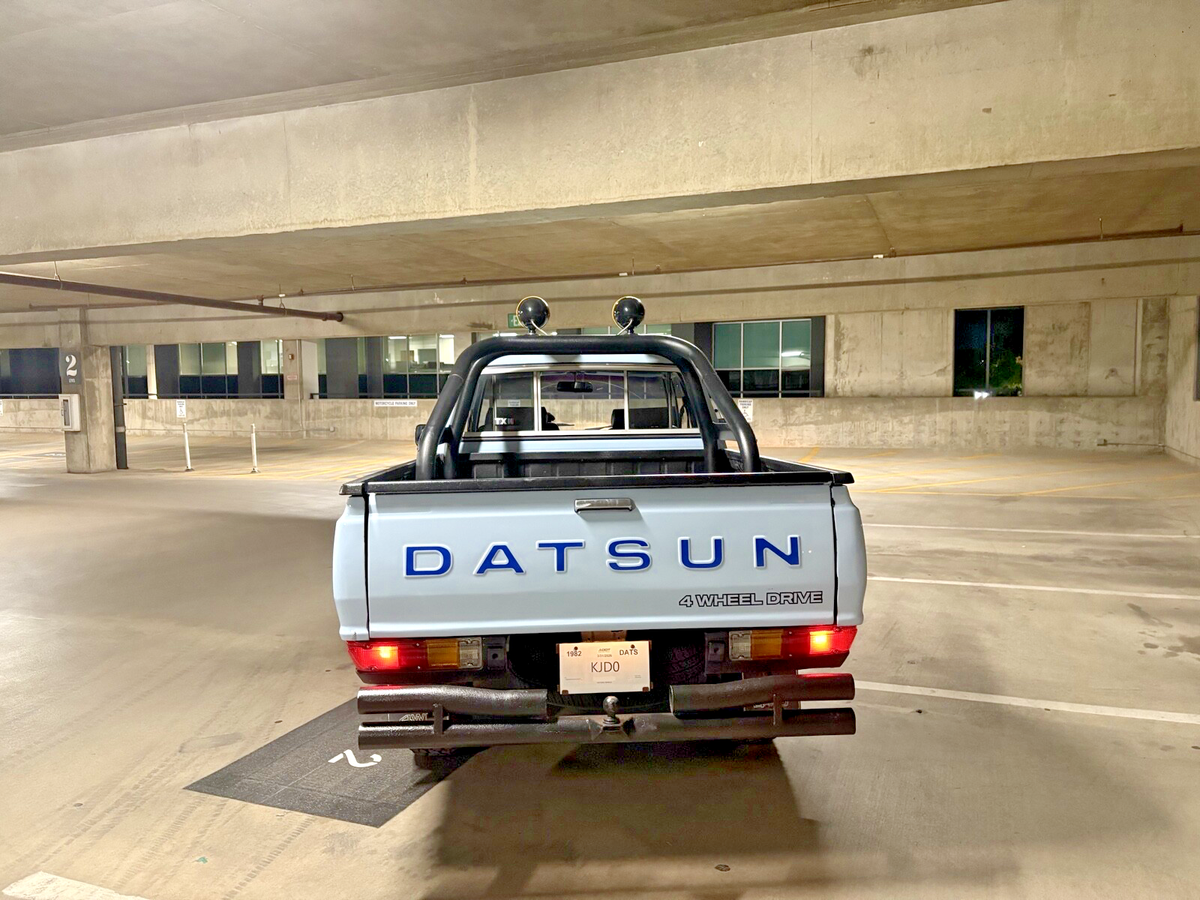 1982 Datsun 720 King Cab 4x4, 89k Miles, Stock Z22 Survivor – Phoenix, AZMeet “Little Bluey,” my 1982 Datsun 720 King Cab 4x4, a true stock survivor with just 89,000 original miles. This extended cab pickup runs and drives like it should, powered by the iconic Z22 2.2L inline-4 engine and a 4-speed manual with 4WD. The black interior is near-perfect—no rips, no tears, a pristine headliner, and a clean dash. The blue exterior, a recent repaint, shines nicely but has minor overspray on moulding, rubber, glass, and bed liner specks on paint—easy cosmetic fixes for a detailer. Recently refreshed with $500 in mechanical work (oil change, new filters, brakes checked), it’s ready to roll. Features include AM/FM stereo and air conditioning. With a clean title, three owners, and partial vehicle history, this rare Datsun draws crowds wherever I take it with my son. Valued at $27,000 by CarGurus (per Hagerty/State Farm quote). Located in Phoenix, AZ—local pickup preferred. I’m open to trades for 1960-1980 American muscle cars (e.g., Road Runner, Nova, GTO, Grand National); send serious trade offers via eBay messages with details. No reserve, starting at $13,500—bid now or grab it at $18,500 Buy It Now to own this classic 4x4 gem!