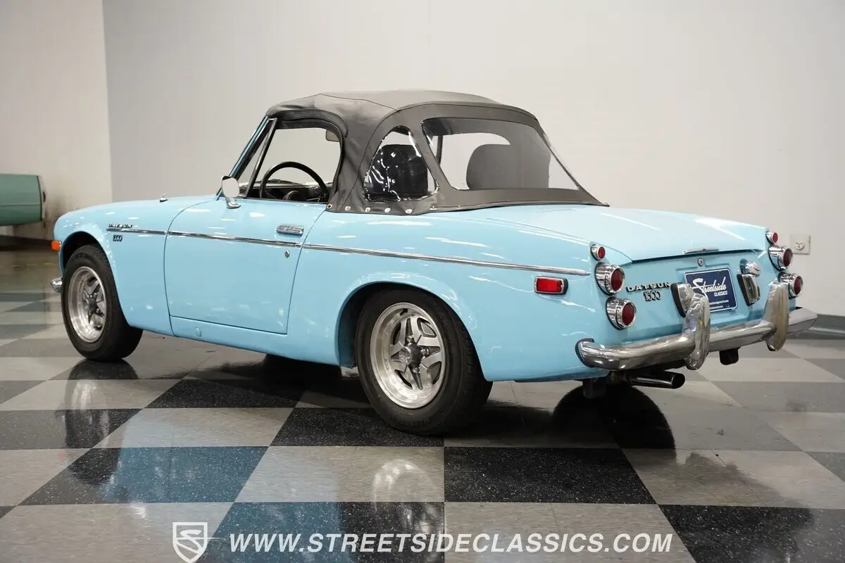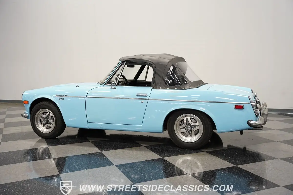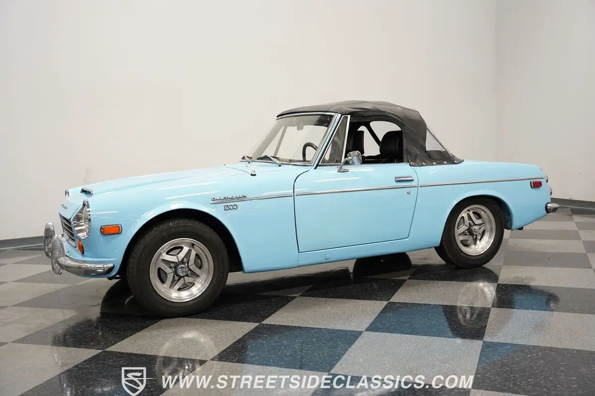 Vehicle Original VIN : SPL31129768HIGHLIGHTS • 1600cc Inline-4 Engine • Dual SU Carburetors • 4-Speed Manual Transmission • Ceramic-Coated Header • Gear Reduction Starter • GM Single-Wire Alternator • New Fuel Pump, Motor Mounts • New Timing Chain and Tensioner • New Thermostat and Hoses • New Transmission and Pinion Seal • Front Disc Brakes • Stainless-Relined Front Brake Calipers • New Brakes • Single Exhaust with Resonator • Manual Steering • Sora Blue Base/Clear Paint • Black Vinyl Convertible Top • 14" 280Z Black Pearl Alloy Wheels • 185/70R14 Front and Rear Tires – General • Black Interior with Bucket Seats • New Carpet and Seals • Center Console with Manual Shifter • AM/FM Stereo • Owner's Manual