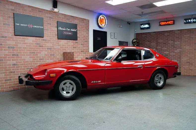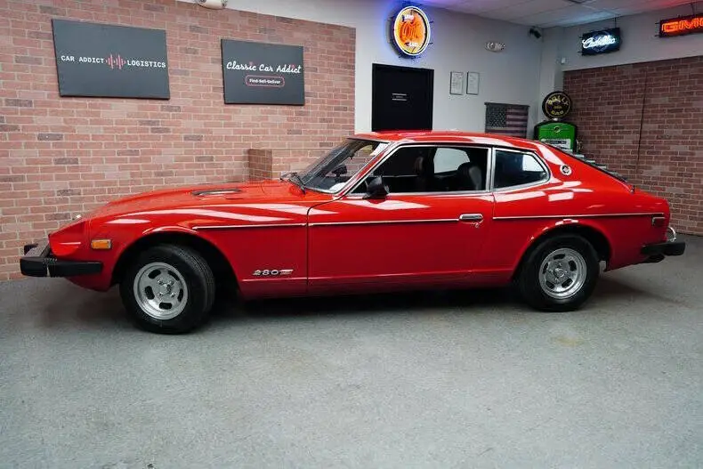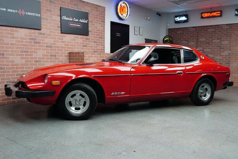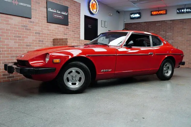 Classic Car Addict is proud to present this 1977 Datsun 280Z 2+2 for sale in our Mesa, Arizona showroom. Nissan released the Datsun 280Z model for the North American market in the 1975 model year. In a further effort to keep the S30 models sporting in the face of increasingly stringent U.S. emission and safety requirements, engine size was again increased, this time to 2.8 liters. The seats are trimmed in black vinyl with matching door panels and black carpeting. Appointments include an electric rear window defogger, locking glovebox and a Kenwood stereo. The AC does blow nice and cold. The three-spoke steering wheel frames a 160-mph speedometer and tachometer with a 6,400-rpm redline. You have additional readouts for coolant temperature, oil pressure, volts, and fuel level that are mounted in the center stack. The five-digit odometer reads 1,368. True mileage is unknown. From factory the Datsun was finished in Pacific Blue (307) and was refinished in red sometime in its life. It features front and rear bumper guards, hood vents, dual side mirrors, rear window louvers, and bright rocker trim with a single exhaust outlet. The 13 MAG wheels wear 185/70R13 Ironman iMove PT tires with DOT dates from 2014. Braking is handled by power-assisted front discs and rear drums. The 2.8-liter L28 inline-six features Bosch L-Jetronic fuel injection and was factory rated at 149 horsepower and 163 lb.-ft of torque. Power is sent to the rear wheels through a five-speed manual transmission. Cold start is instantaneous, and you can drive off immediately with no finicky shaking or die-outs. Call Classic Car Addict today, 480-256-1459. And please be sure to watch the full walkaround and driving video linked directly to our YouTube channel under Classic Car Addicts. We are a Classic Car company that combines a lifelong passion for classic cars with a level of customer service that thinks of you first. A company small enough to allow a personal relationship but a company with global expertise to deliver all your needs.