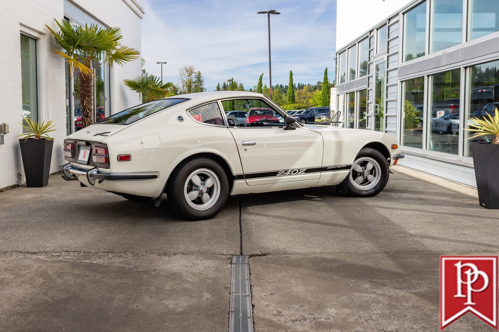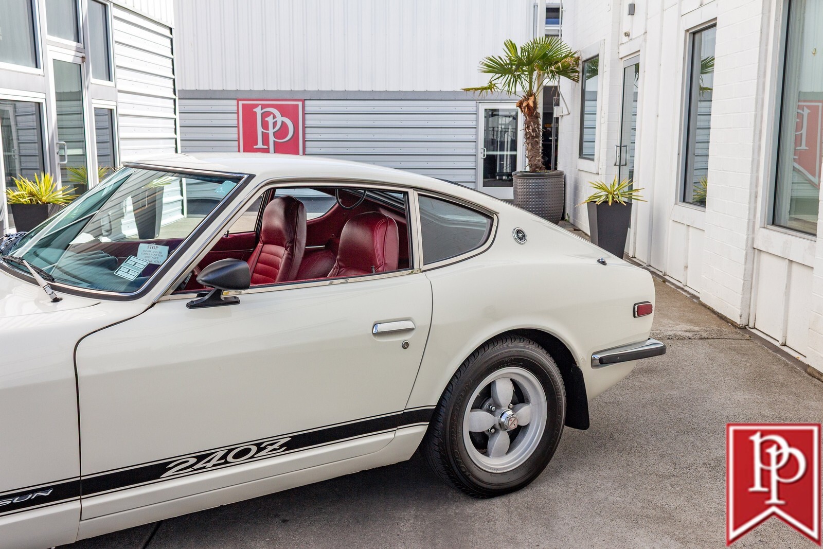 1972 Datsun 240Z Although Datsun had been selling cars in the United States prior to the introduction of the 240Z, the two-door sports car was the model that really put them on the map. With its stunning long nose and sloped fastback shape, the 240Z looked both more exotic and far more expensive than it actually was, and became one of the first truly desirable Japanese cars stateside. This 1972 240Z is particularly special, as it is being offered from its original owner who purchased the car new in Bellingham, WA and is sold with its original title and warranty/service booklets. Finished in white with black side stripes, this 240Z is lightly modified in a manner that somebody would have done in period. Sitting on a set of 4-spoke American Racing mag wheels, and with a BRE air dam up front, this car is a true blast from the past. In 2018, a comprehensive restoration on this car was completed where some of the very common rust issues were addressed, the whole car received new paint and re-striped with the correct 240Z sill stripes. The interior of the car was upholstered in red vinyl, creating a stunning contrast to the white exterior. During the restoration, the entire interior was thoroughly gone through and brought back to original specification. This included new seat upholstery, new carpets and the dashboard and instruments were refurbished but remain original to the car. Another great thing about this car is that it is fitted with air conditioning which wasn’t particularly common and great to have for summer drives. Under the hood sits the powerplant that made the 240Z so legendary. Known as the L24, this 2.4-liter inline-6 with a single overhead camshaft produces 150 horsepower and 146 lb-ft of torque and is known for its low end punch and great sound as you rev it out. Breathing through a pair of Hitachi SU carburetors, this car’s engine bay looks to have been well kept from new, with original stickers still affixed to the orange air cleaner. The 240Z was a car that brought sports cars to the masses in the 1960s and 1970s and remains a very sought after car to this day. This example is particularly unique, having been under the care of a single owner from new, and benefiting from the recent reconditioning. If you have always wanted to experience the fun of a Datsun Z, this is a fantastic example that would look great in any garage. Key Features Single Ownership From New Purchased in Bellingham, WA Restoration Completed in 2018 w/Receipts Rust Repair and Paint Work New Chrome Pieces Full Interior Overhaul w/Original Dash and Gauges 2.4-Liter SOHC Inline-6 150 Horsepower/146 Lb-Ft of Torque Dual Hitachi SU Carburetors American Racing 4-Spoke Magnesium Wheels Air Conditioning BRE Air Dam AM Radio Additional Information Original Title Original Owners and Warranty Manuals For more information on this beautiful 1972 Datsun 240Z or any of our 100+ High-Performance, Exotic and Special Interest cars always in stock, contact one of our friendly and knowledgeable sales consultants or always feel free to drop by our 40,000+ sq ft of Indoor Showrooms in Bellevue, WA - Home of the West Coast's Most Exciting Inventory of Luxury, Exotic, High Performance and Collectible Automobiles. With 200+ Always On Site, Nobody Has What We Have!