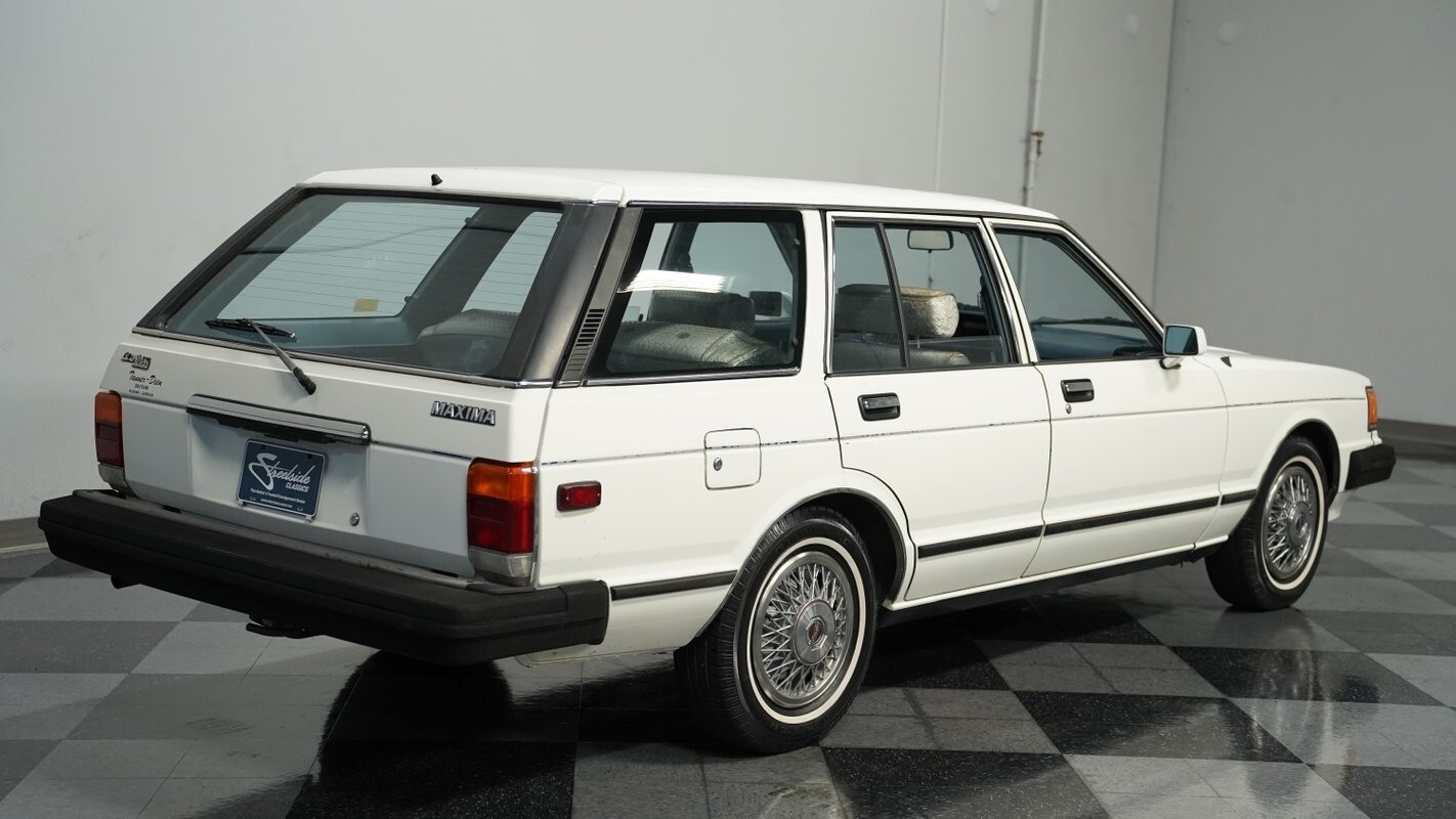 From day one, this 1982 Datsun Maxima GL Wagon has remained in the same family - a mother-son legacy spanning four decades. Finished in white with distinctive blue painted stripes, this long-roof Maxima embodies Japanese practicality with unexpected flair. The 14-inch aluminum hub caps maintain original specifications, wrapped in 195/75R14 tires that connect this wagon to the road. A factory sunroof adds an unexpected touch of luxury to this utilitarian design. With just 113,640 actual miles on the clock, this single-family Japanese wagon shows remarkably low use for its age.