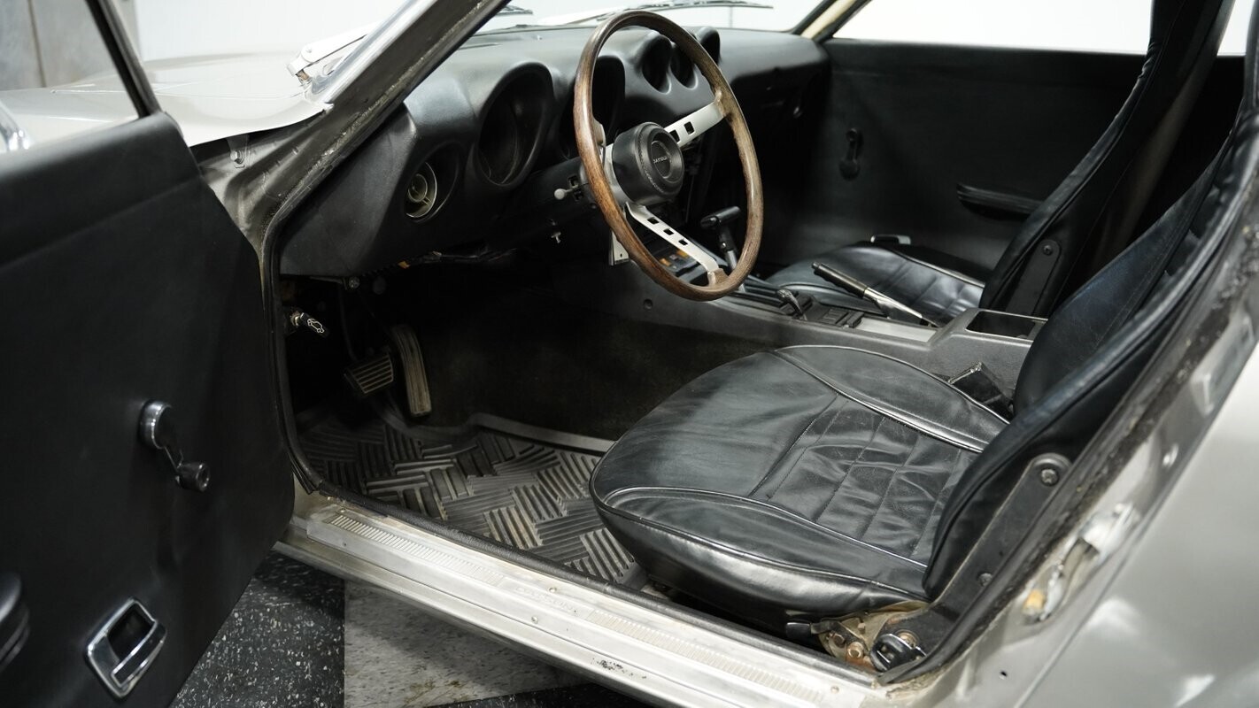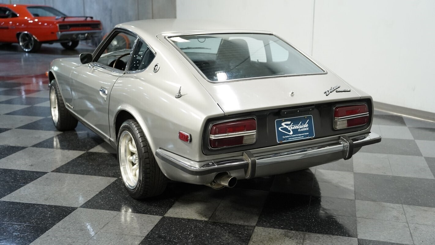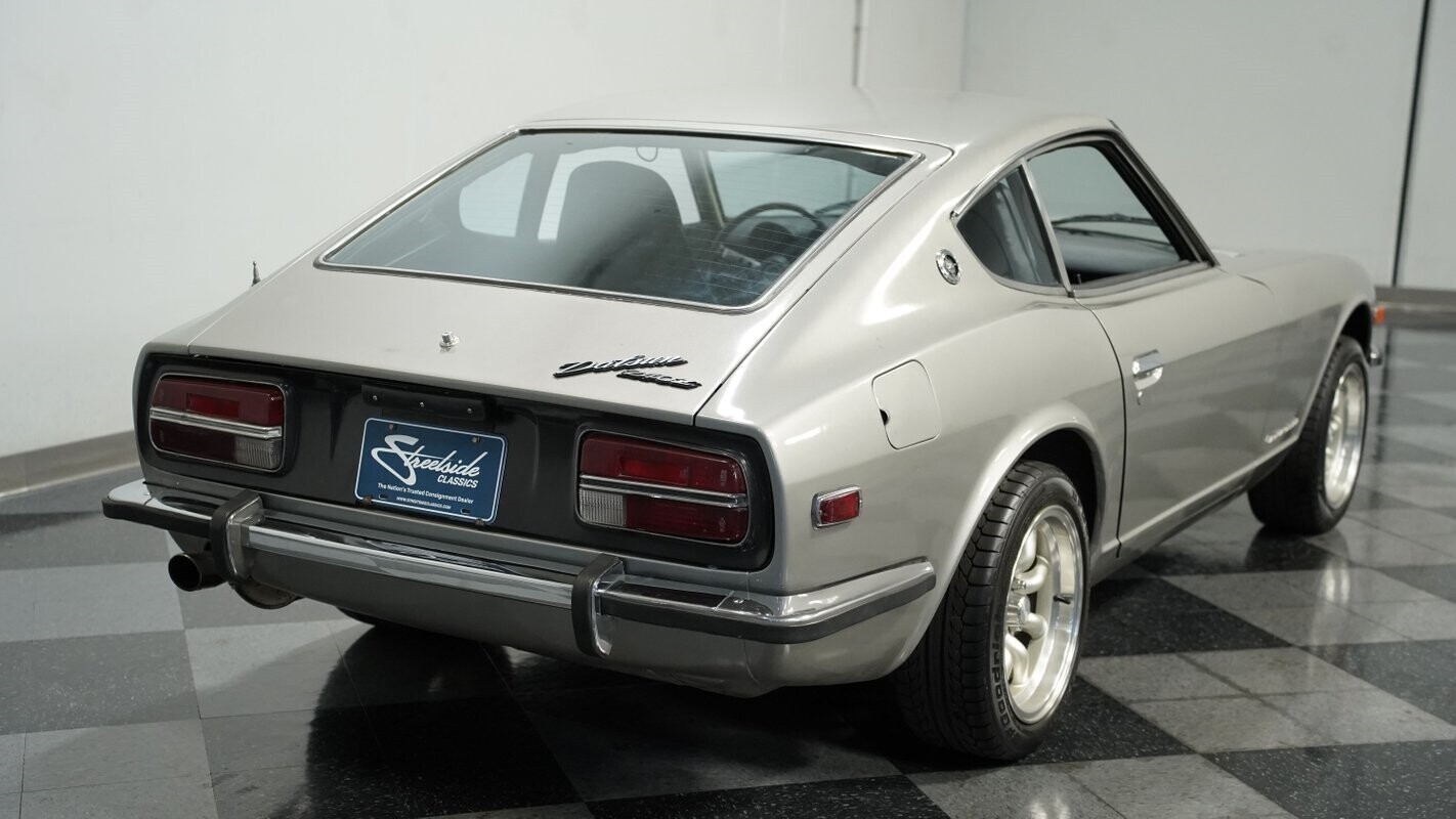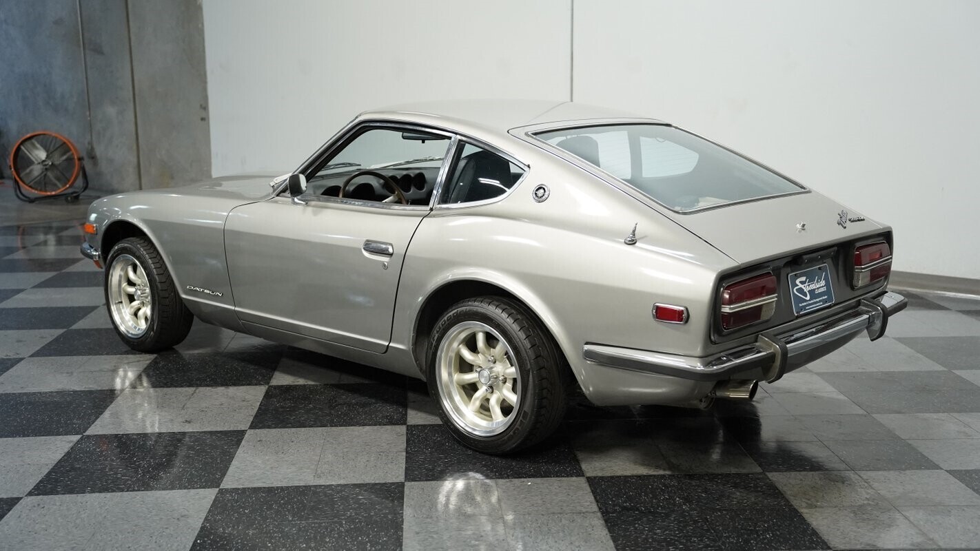 Fast and agile, this 1972 Datsun 240Z in Silver Metallic displays the pure design language that made Japanese sports cars legendary. The fluid lines and distinctive fastback profile create an iconic look that remains unmistakable to automotive fans worldwide. Konig 15-inch wheels complement the Z's proportions while BF Goodrich 195/50/15 tires provide ample grip in all driving conditions. The chrome trim retains its factory appearance, and the lighting elements complete the classic look with authentic style.