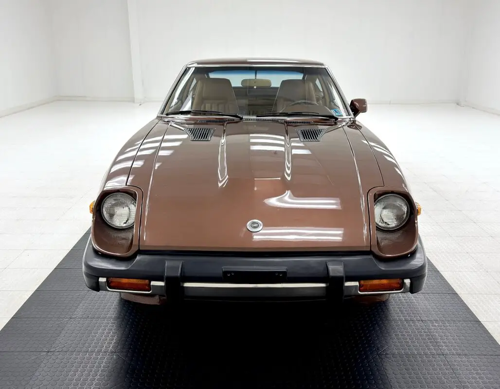 We were still in our 70's earth tone day in 1980, and this car is dressed in single stage Mahogany Metallic, an esteemed member of the brown family. Never mind that Mopar was playing with Impact colors, Datsun stuck with more conservative choices and it looks great on this long nosed sports car. In profile, it can be confused for few other cars and the 14-inch wheels with 70 series tires and a late 2024 date code, are visually connected by a finned rocker panel and topped by wheel opening trim. Sporty accoutrements includes the twin ducts on the hood with black grates that match the cowl, and a grated, aluminum B-pillar that looks like something out of Star Wars. The rear window faces the sky and ends with Datsun's iconic tail light design over a razor straight bumper. In front, the inset headlights are pure sport and head up a wind defeating nose. This fantastically preserved car shows only minor ghosting in the paint and a few chips for exterior imperfections.