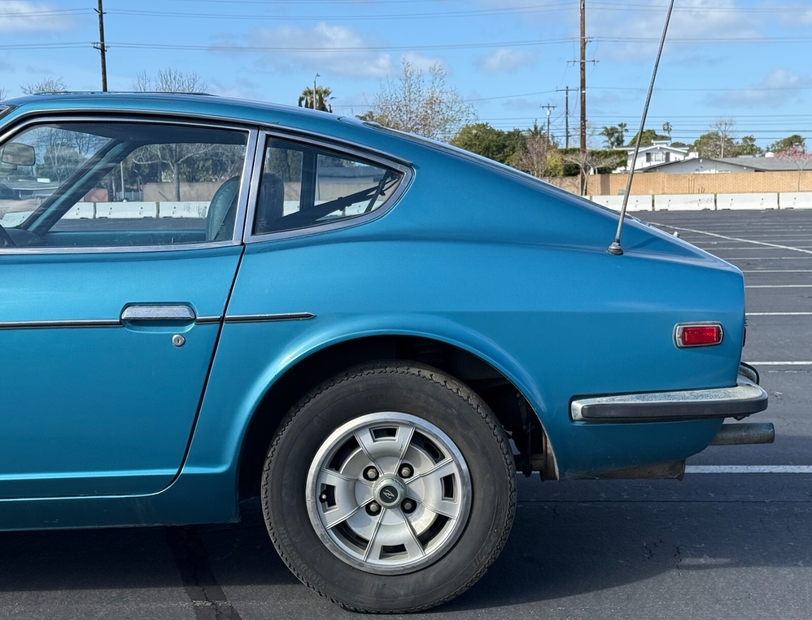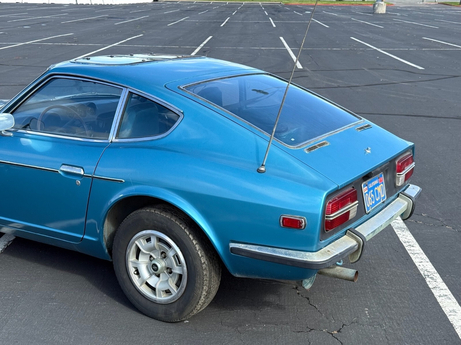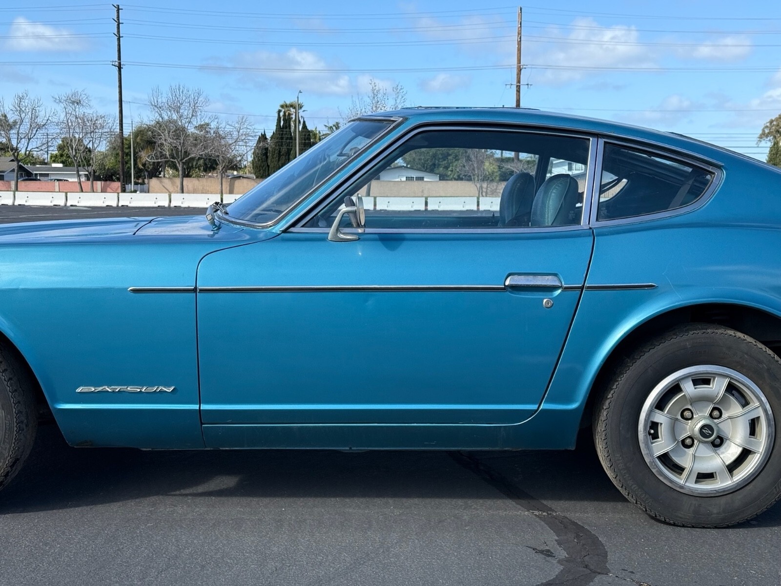 This 240Z is a running (not driving) car that has lived itsentire life in California. As a result it is completely rust free. It has never been in an accident. It has had one respray in a lighter blue than the original 903 Universal Blue. The original color was only used on Series 1 cars and was discontinued in 1971. According to the International 240Z registry, the beautiful color combination of Universal Blue with blue interior accounted for only 2.01% of production meaning only 3310 came this way. It still wears its original 1970 California blue and yellow license plates. The body is razorstraight.