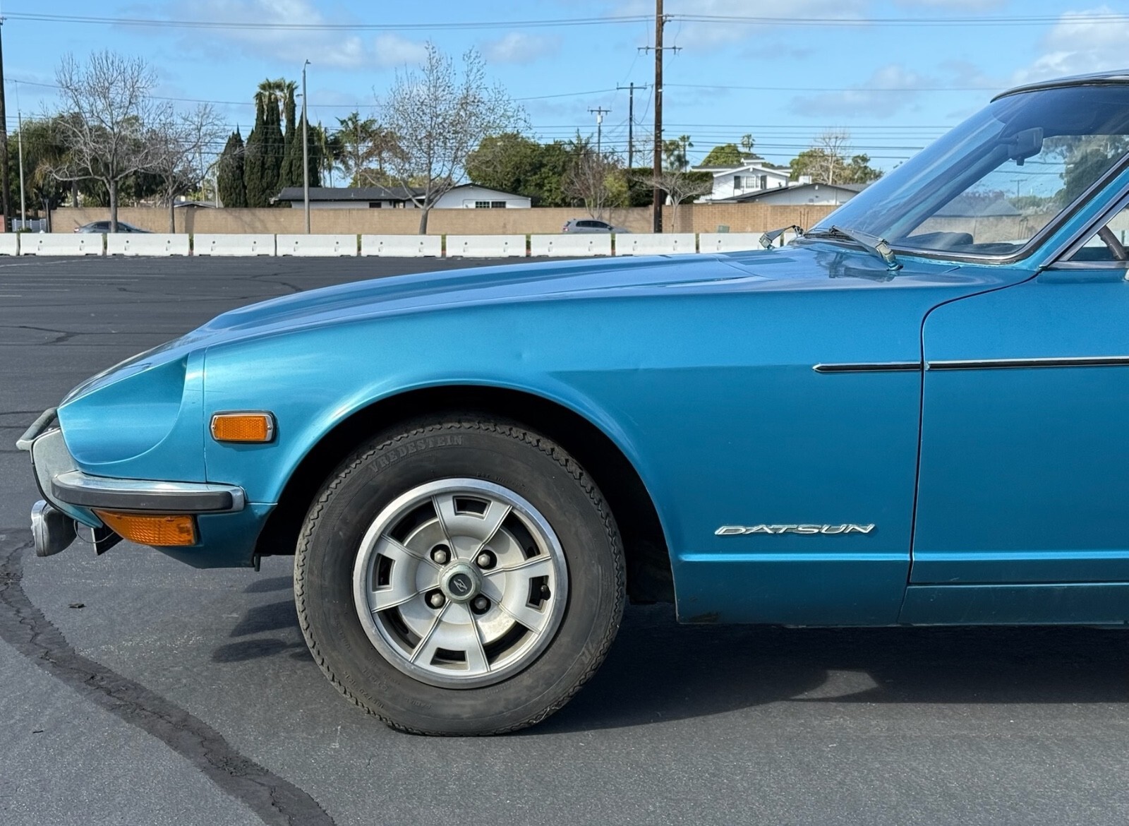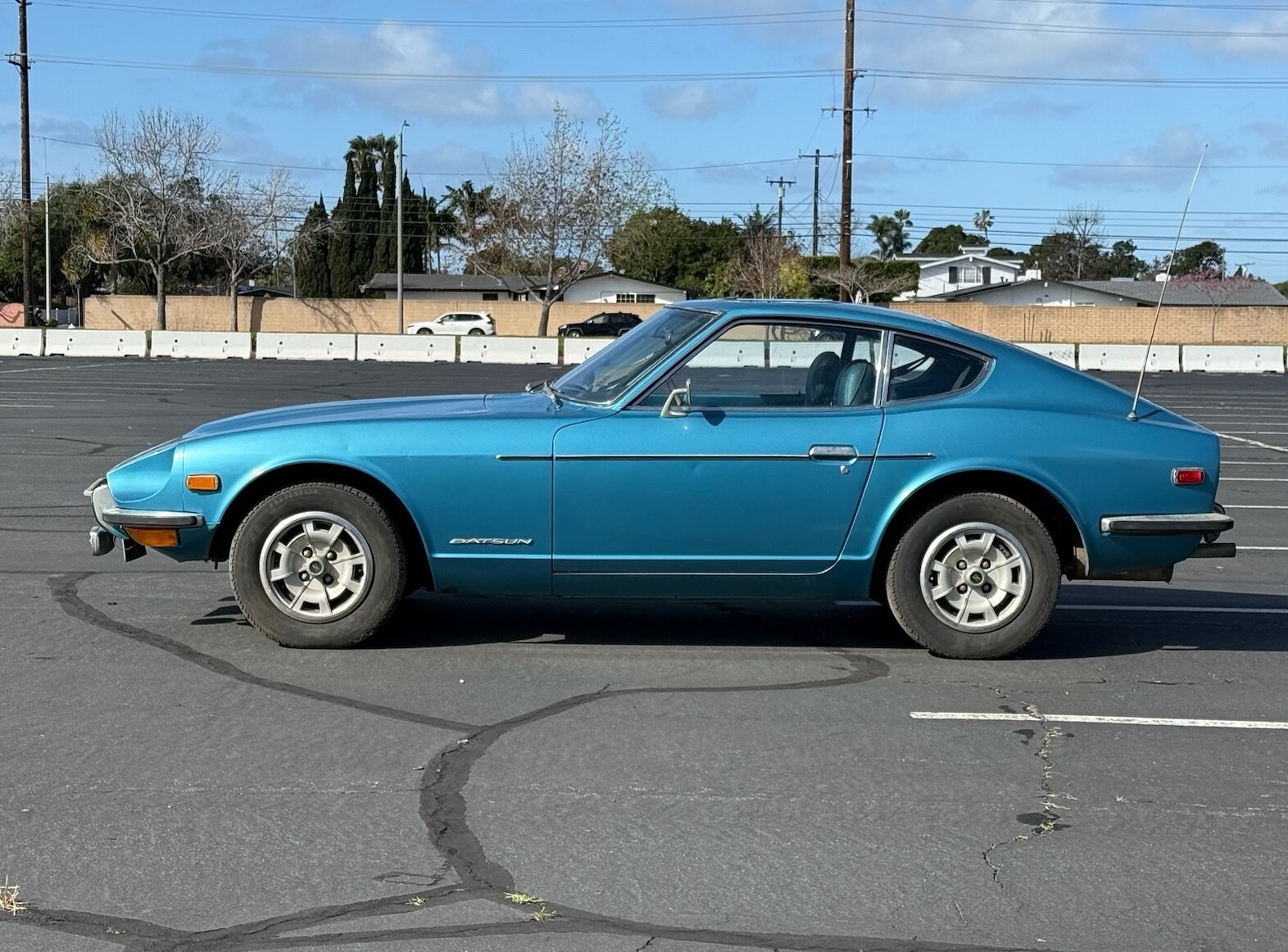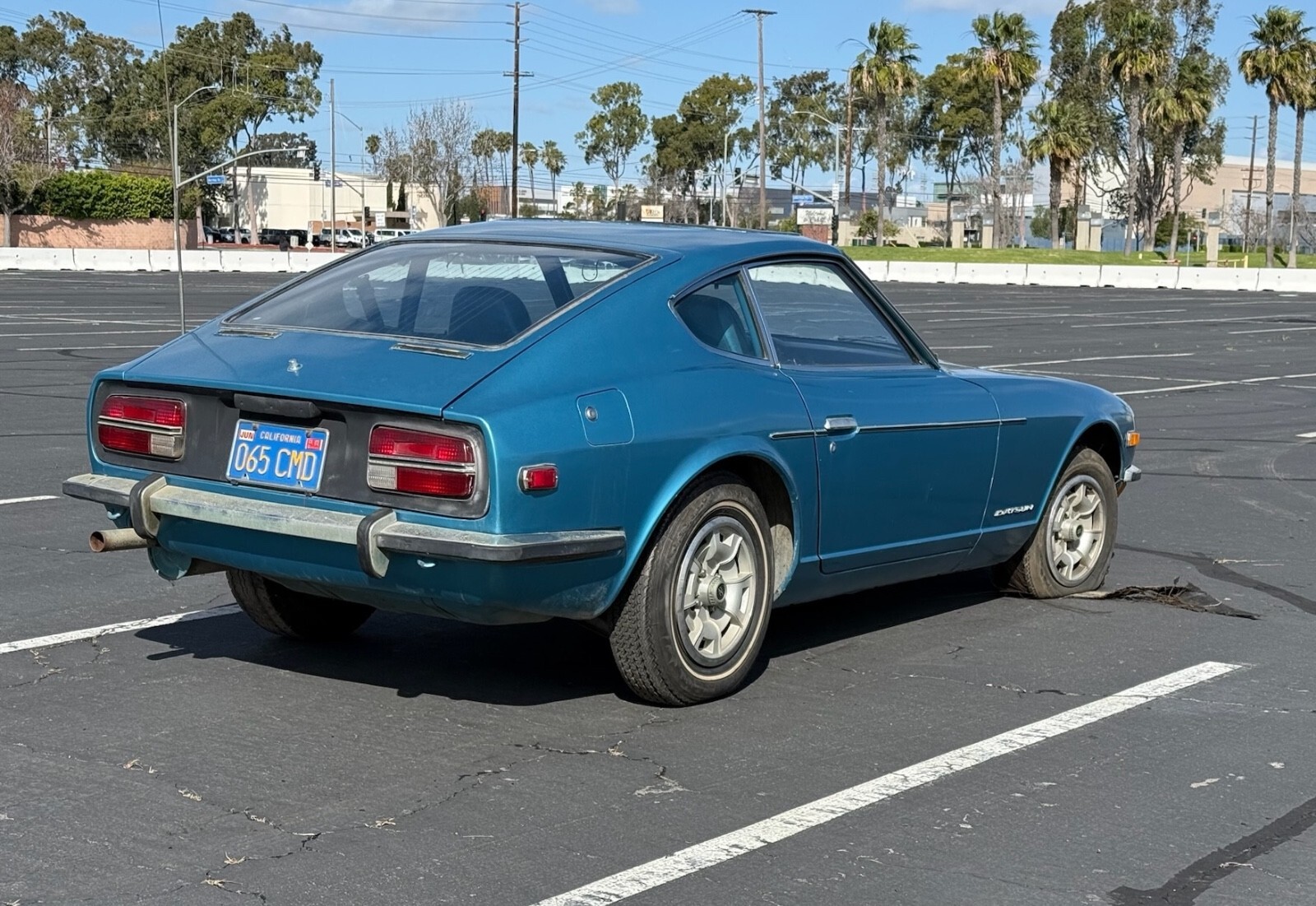 This 240Z is a running (not driving) car that has lived itsentire life in California. As a result it is completely rust free. It has never been in an accident. It has had one respray in a lighter blue than the original 903 Universal Blue. The original color was only used on Series 1 cars and was discontinued in 1971. According to the International 240Z registry, the beautiful color combination of Universal Blue with blue interior accounted for only 2.01% of production meaning only 3310 came this way. It still wears its original 1970 California blue and yellow license plates. The body is razorstraight.