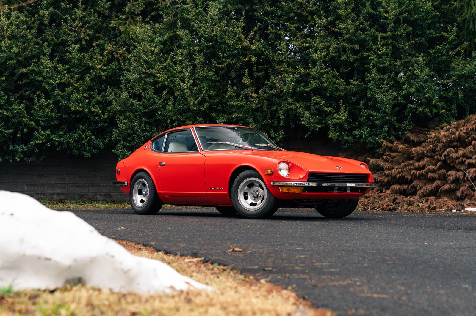 This 1972 Datsun 240Z is a highly documented and well-preserved example originally sold new through legendary Bob Sharp Motors in Connecticut, one of the most prominent Nissan racing and performance dealerships of the era. Finished in its original Persimmon Red (paint code 110) over a white interior, the car is accompanied by extensive documentation including its original window sticker, bill of sale, warranty and service booklet, owner’s manuals, registration records, and a 36,000-mile guarantee bond issued by the selling dealer. Service history is documented from new through the present day, with records showing the car’s early life with its original owner before passing through caretakers closely connected to selling dealer, Bob Sharp Motors. Most recently acquired by Wistar Motors, the car has received additional preparation including a new clutch, carb adjustment, spark plug replacement, seat assembly repair, and a new battery, preserving this historically significant and thoroughly documented early Z-car for its next enthusiast owner.
