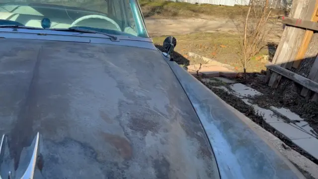 Bad: Needs shocks, exhaust and some brake work (rear wheel cylinder leaks. Of course needs hood painted. Clock died. No AC. Minor rust at rear quarters. New door seals needed. No key for trunk.