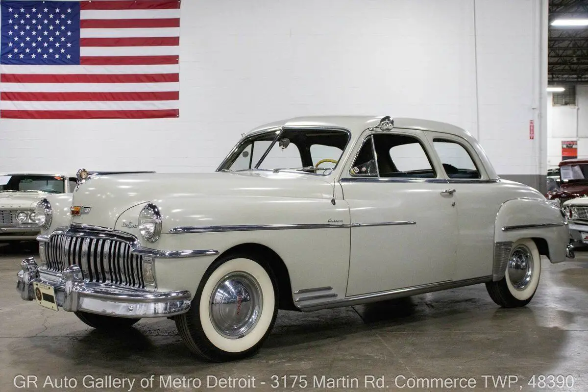 GR Auto Gallery is pleased to present this, 2-owner, low-mileage, 1949 Desoto Custom Club Coupe for your consideration. This Club Coupe comes with a nice Dawn Gray exterior paired with a clean Blue interior. Powering this Desoto is the original 236ci Inline 6 paired with a fluid drive transmission. This all-original Custom comes with some nice features such as; a front bench seat, manual windows, front vent windows, heat, and a spare tire. This car has won multiple awards at car shows with trophies to prove it and has many articles written about it. Drive this one out of our showroom or have us assist with shipping it to you anywhere in the United States! Don't hesitate to give us a call with any questions or for more information.