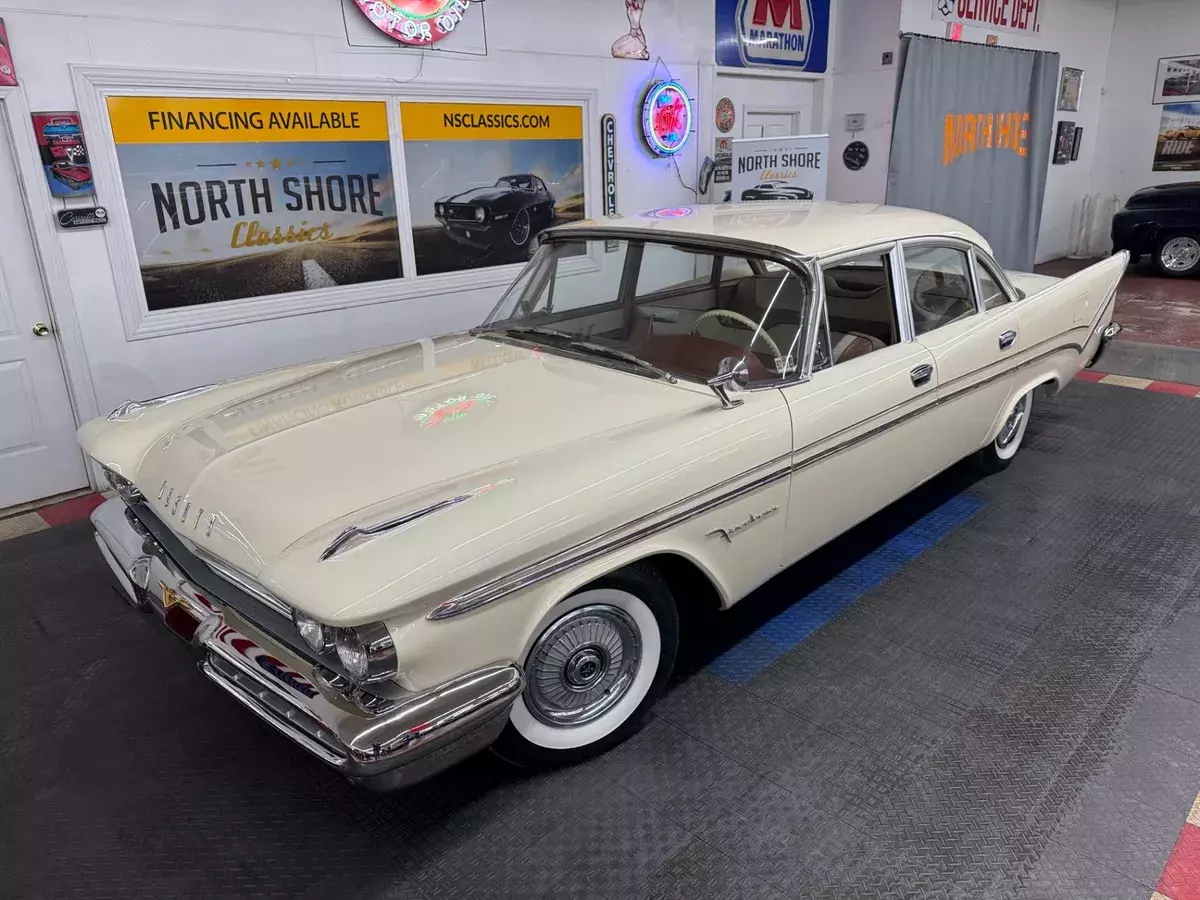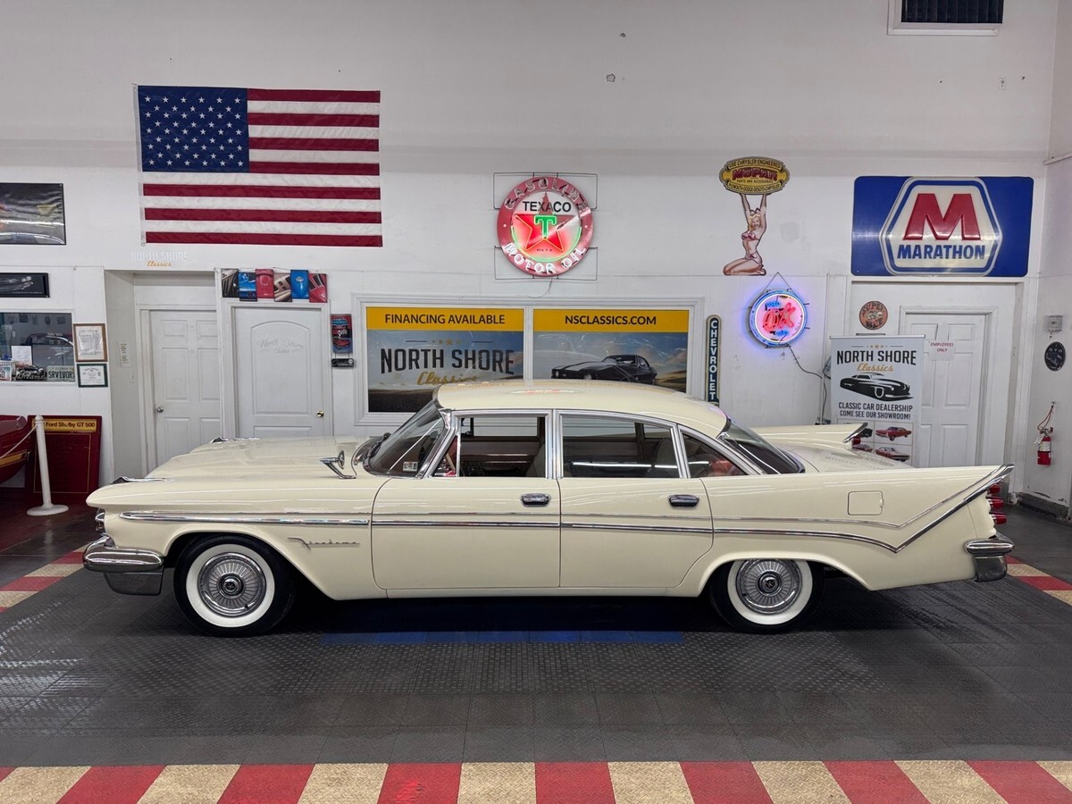 *1959 DESOTO FIREDOME*4 DOOR SEDAN*383 C.I. ENGINE*PUSH BUTTON AUTOMATIC TRANSMISSION*VERY NICE ANTIQUE WHITE PAINT*TRI-TONE SADDLE/TAN/WHITE INTERIOR*VERY NICE CHROME AND TRIM (pass door trim has damage)*POWER STEERING*MANUAL DRUM BRAKES*VERY CLEAN AND SOLID FLOORS / FRAME / TRUNK*RUNS AND DRIVES GREAT*NEW SPARK PLUGS AND WIRES*WIDE WHITE WALL TIRES W/FULL WHEEL COVERS*ODOMETER SHOWS 37,600 MILES**CALL US TODAY844-652-8767**ASK ABOUT OUR EASY FINANCE OPTIONS**WE SHIP WORLD WIDE