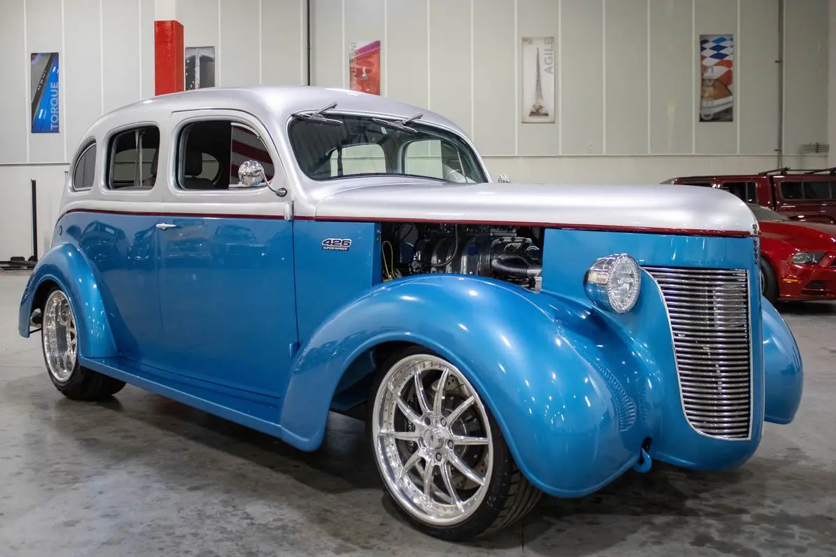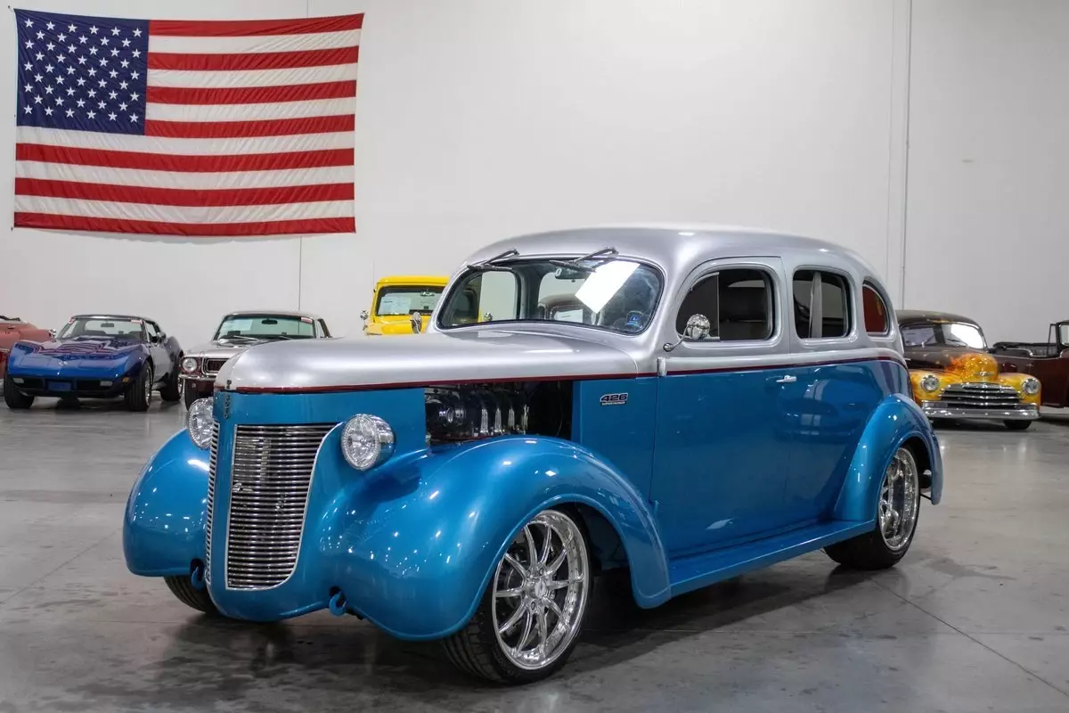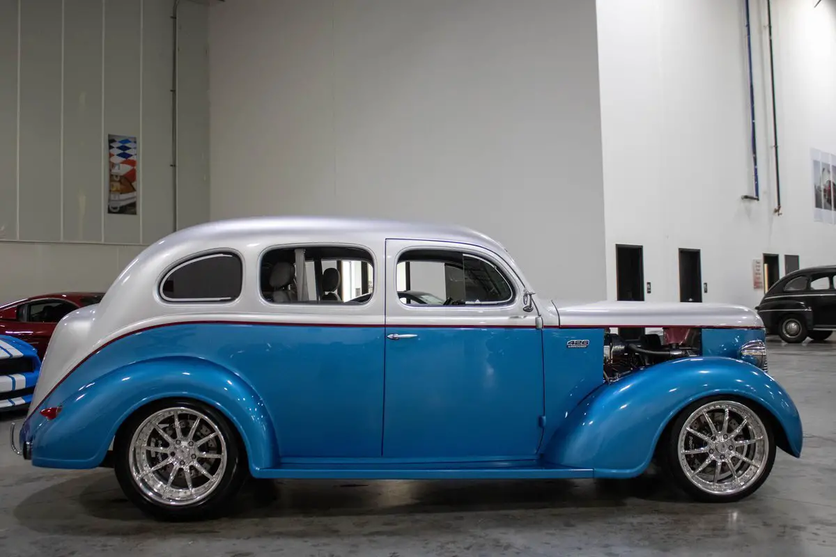 Vehicle Original VIN : S341442• This vehicle is located at our Indianapolis facility - 2461 Reeves Rd #194, Plainfield, IN 46168 • This 1937 DeSoto S-3 Street Rod is a striking, frame-off custom build that artfully blends pre-war style with full-throttle modern performance. Finished in a sleek metallic blue and silver two-tone exterior, the car's bold color scheme complements its aggressive stance and high-end craftsmanship. Inside, a custom grey leather interior offers a clean, contemporary feel while maintaining the car's vintage roots. Under the hood lies a fire-breathing 426ci HEMI V8, topped with a polished Mooneyham blower and dual Edelbrock carburetors, delivering serious horsepower with unmistakable old-school attitude. A Tach Drive distributor keeps the spark strong and synchronized, and a proven 727 TorqueFlite automatic transmission sends power to a rugged 9-inch FNB rear end. The full Chassisworks suspension includes tubular A-arms, coilovers on all four corners, and a 4-link rear setup, providing responsive handling and a smooth, controlled ride. Four-wheel Wilwood disc brakes ensure confident stopping power, while Billet Specialties wheels complete the look with modern flair and function. This DeSoto is more than just a rare sight-it's a purpose-built street rod with serious performance credibility and show-quality presence. Whether you're carving up the boulevard or displaying at the next car show, this '37 S-3 delivers on every front: power, polish, and personality. Price does not include applicable tax, title, license, processing, and/or $199 documentation fees. To see over 80 photos of this car, including the undercarriage, please visit our website br/-