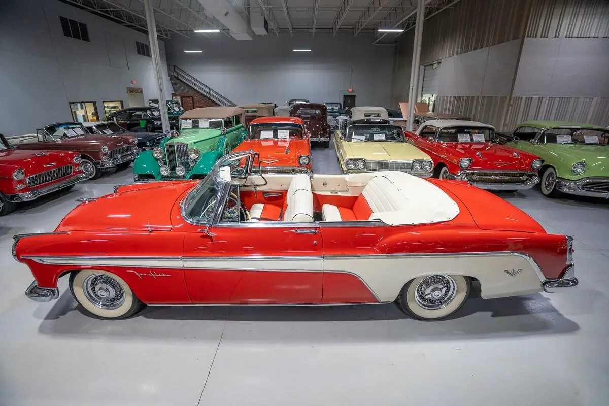 This 1955 Desoto Fireflite Convertible is a beautifully restored, Mopar convertible that is ready for some serious summer cruising. Initially named for Spanish explorer Hernando de Soto, the Desoto marque was positioned in the middle of Chrysler's brand hierarchy, sitting above the entry-level Plymouth brand but below the premium Chrysler (and later Imperial) brands. See, Walter Chrysler learned from his time at General Motors that diversification and hierarchical approach to branding helped the company sell cars to virtually everyone in America. While the Chrysler Corporation survived the Great Depression, production across American automobile manufacturing was ceased due to the onset of World War II. When American auto manufacturing resumed in 1946, virtually every company was re-badging its pre-war offerings for the first few years. By the time the 50s rolled around, American automakers were back in full swing albeit