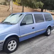 84 Plymouth Voyager has original Japanese Mitsubishi 2.6L 4 cylinders motor, carbureted with automatic transmission, FWD, light blue leather seats.