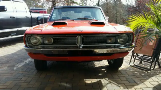1970 dart 340 swinger clone. 1970 340 balanced blueprinted motor. 10.5 to 1 compression. original Hemi Orange swinger. car has new everything, very, very nice car. please look at new list. also has correct Derma interior and new bucket seats as well as carpet. new six pack manifold and carburetors. Dana 60 shortened for A body with Yukon axels and 410 sure grip. 833 4 speed transmission. Clutch and all emblems. New Hemi Orange paint. All shocks and grill.