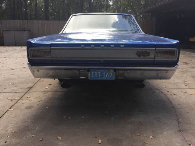 1967 Coronet (Real) RT, one year body style, very nice driver quality. No power steering and manual drum brakes. Automatic on the column. Runs and drives very nice. Paint shines good and is very presentable with very minor blisters. Interior is nice. Car needs seatbelts and left front drivers signal fixed. All lights and horn work. Speedo is not correct speed has the 150 dash cluster. 0ther gauges need to be fixed. Automatic with 727 transmission and 8 3/4 rearend with 323 gears and is positrac. Bumpers have minor pitting. Looks like all inside and outside chrome is there besides front center piece for the grill. Floor pans and floors and framerails and trunk are solid. Any questions call 904 219 6195. Missing fender tag but Vin and title match. Florida title.